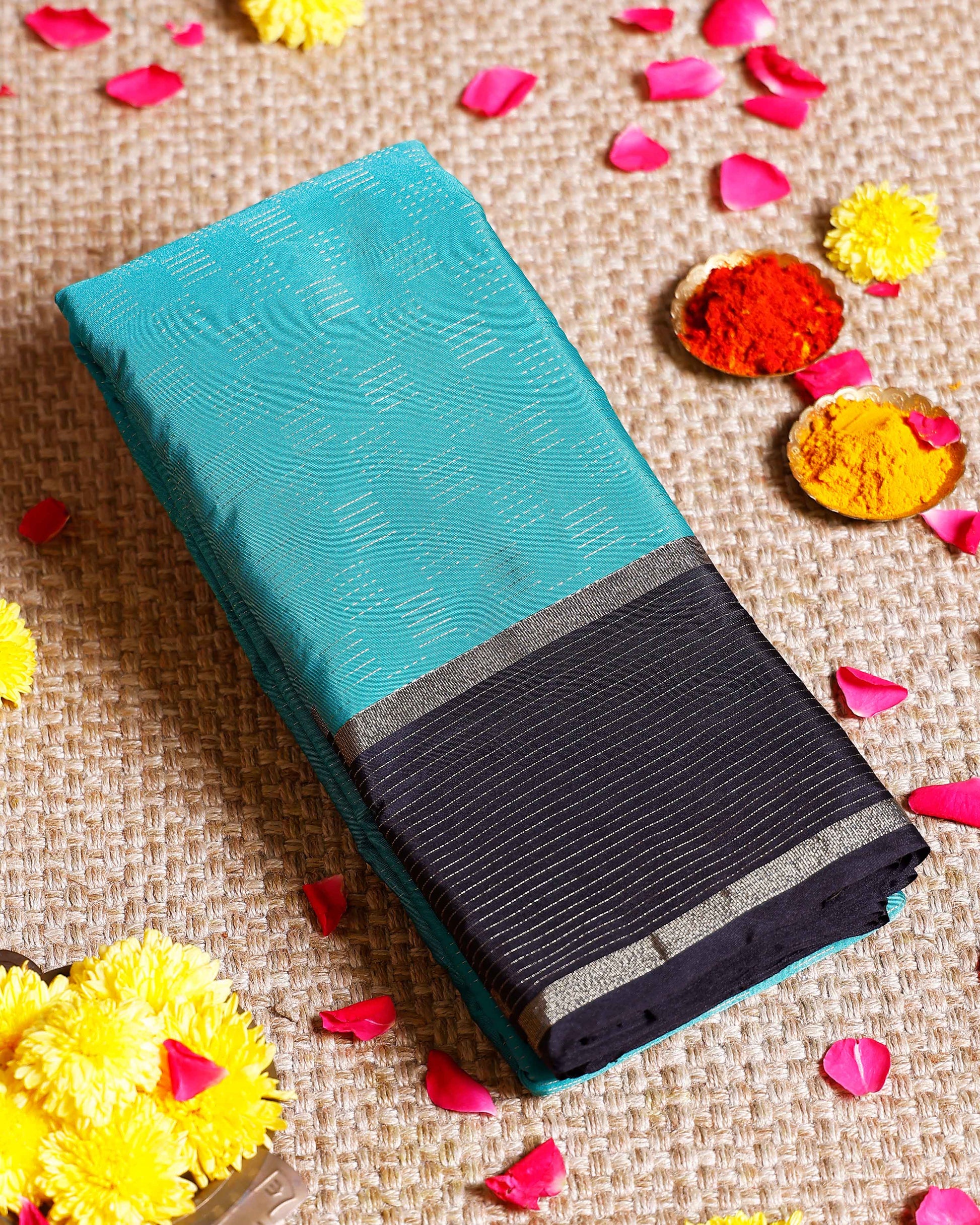 Elegant Handloom Soft Silk Saree with Zari Woven Border - Sky Blue