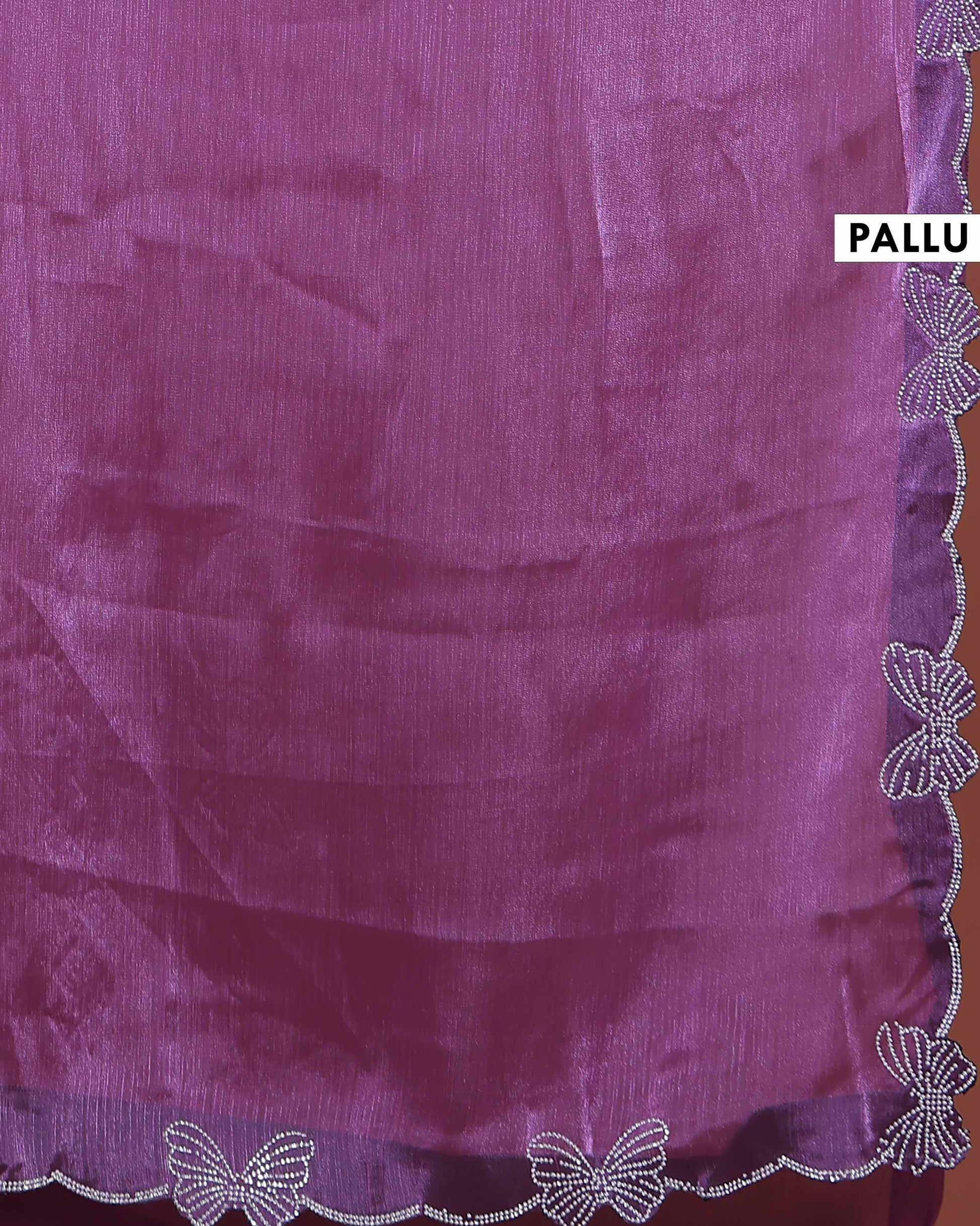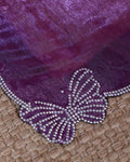 Elegant Fancy Saree with Subtle Sheen Finish & Delicate Butterfly Patterned Lace Border - Purple