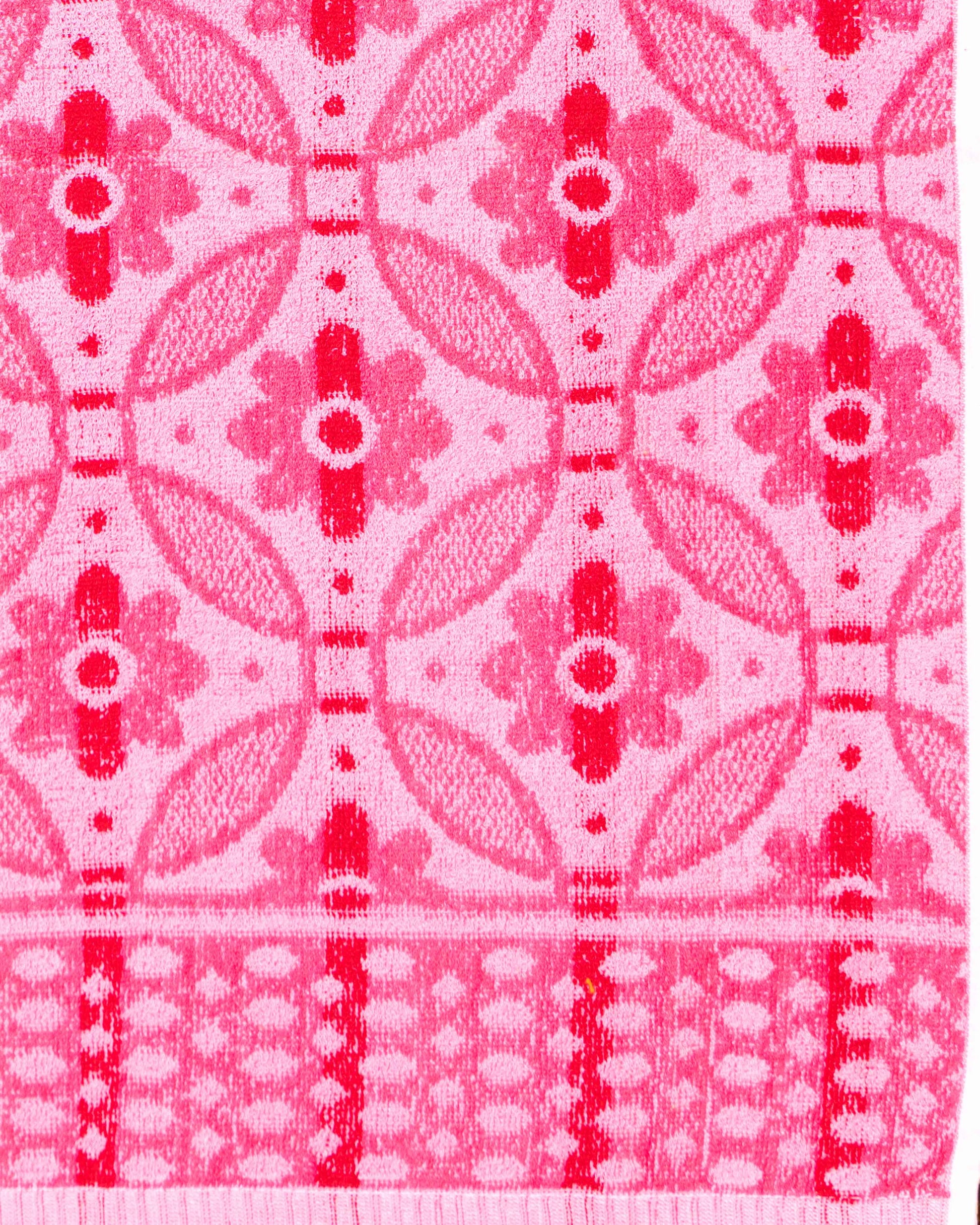Elegant Floral and Geometric Pattern Towel - Pink and Red