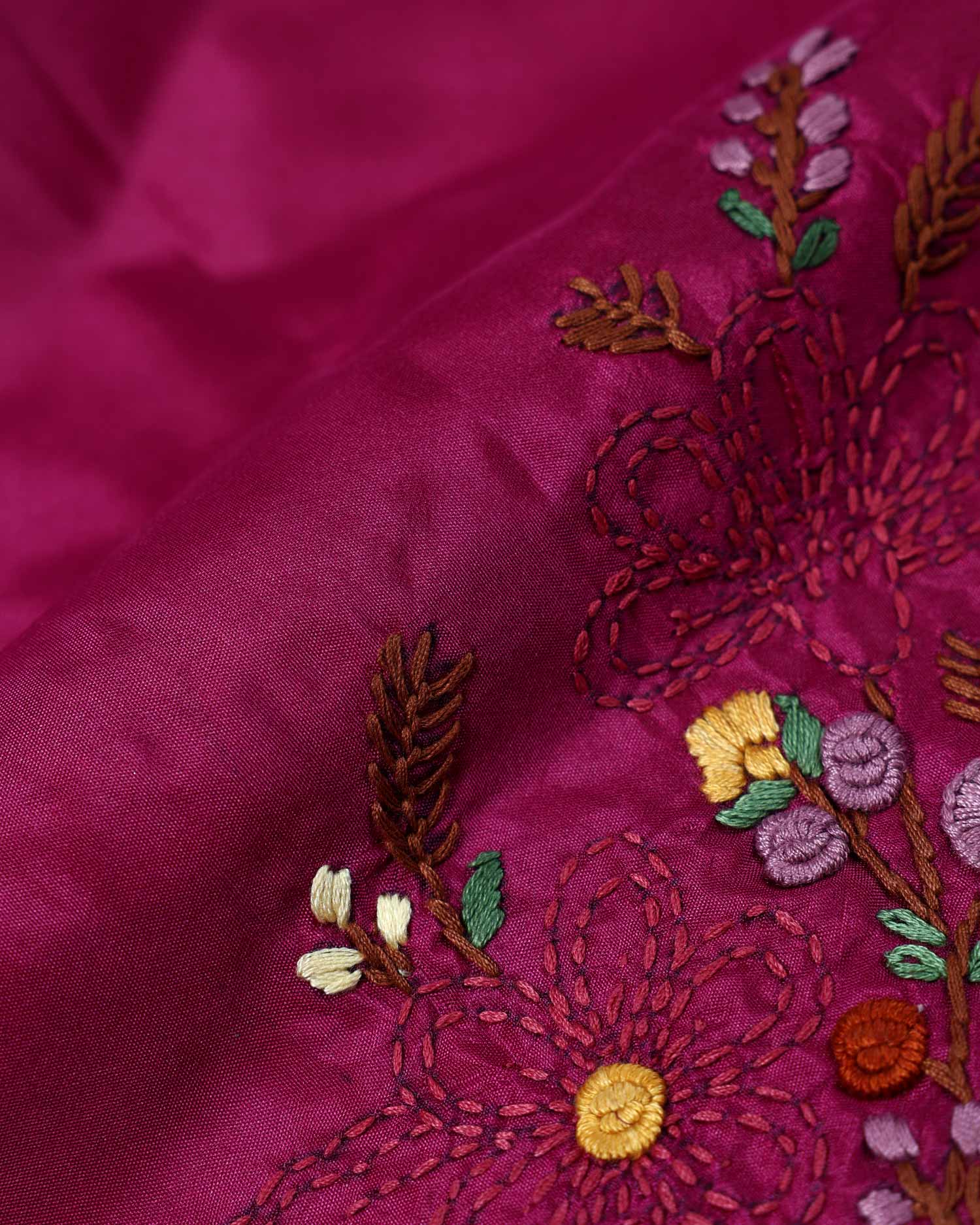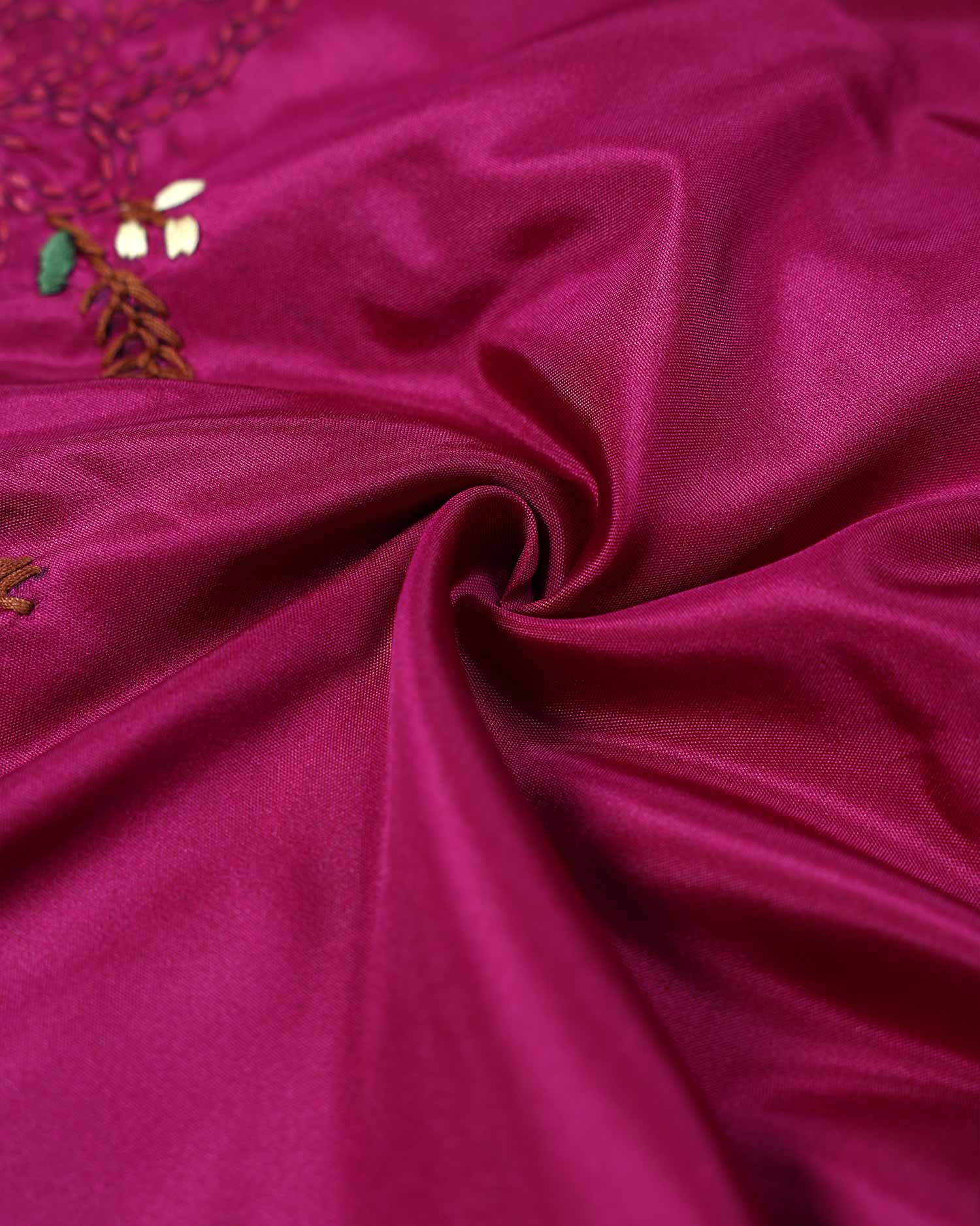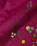 Elegant Floral Embroidered Women’s Blouse Material with Handcrafted Border Work - Deep Magenta