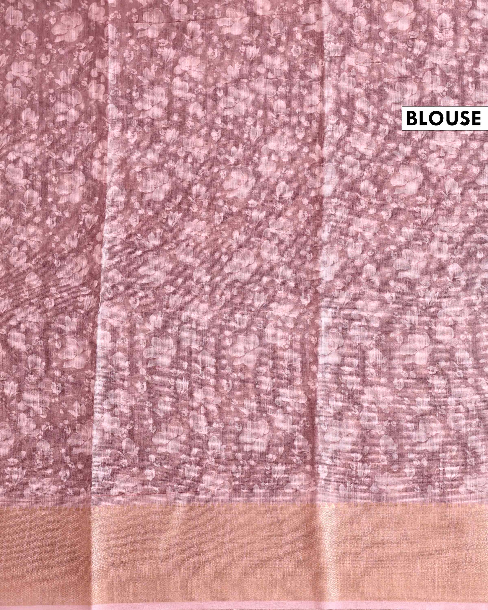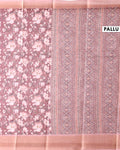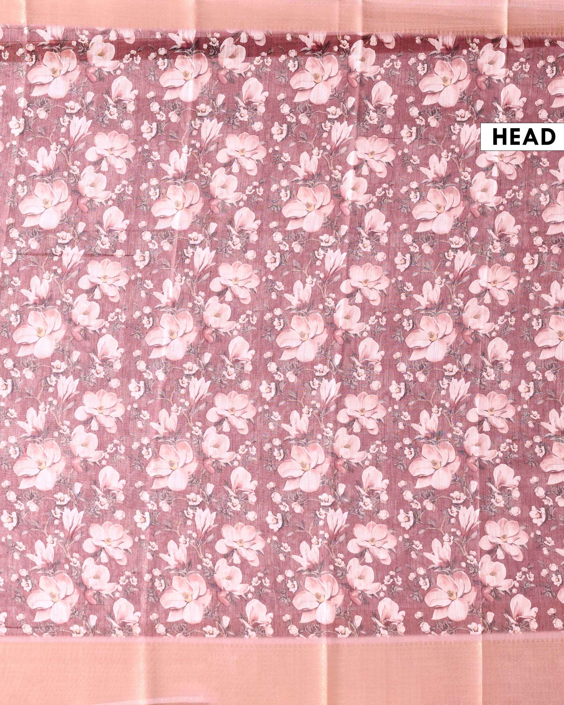 Elegant Floral Linen Tissue Saree with Minimal Woven Zari Border - Brown