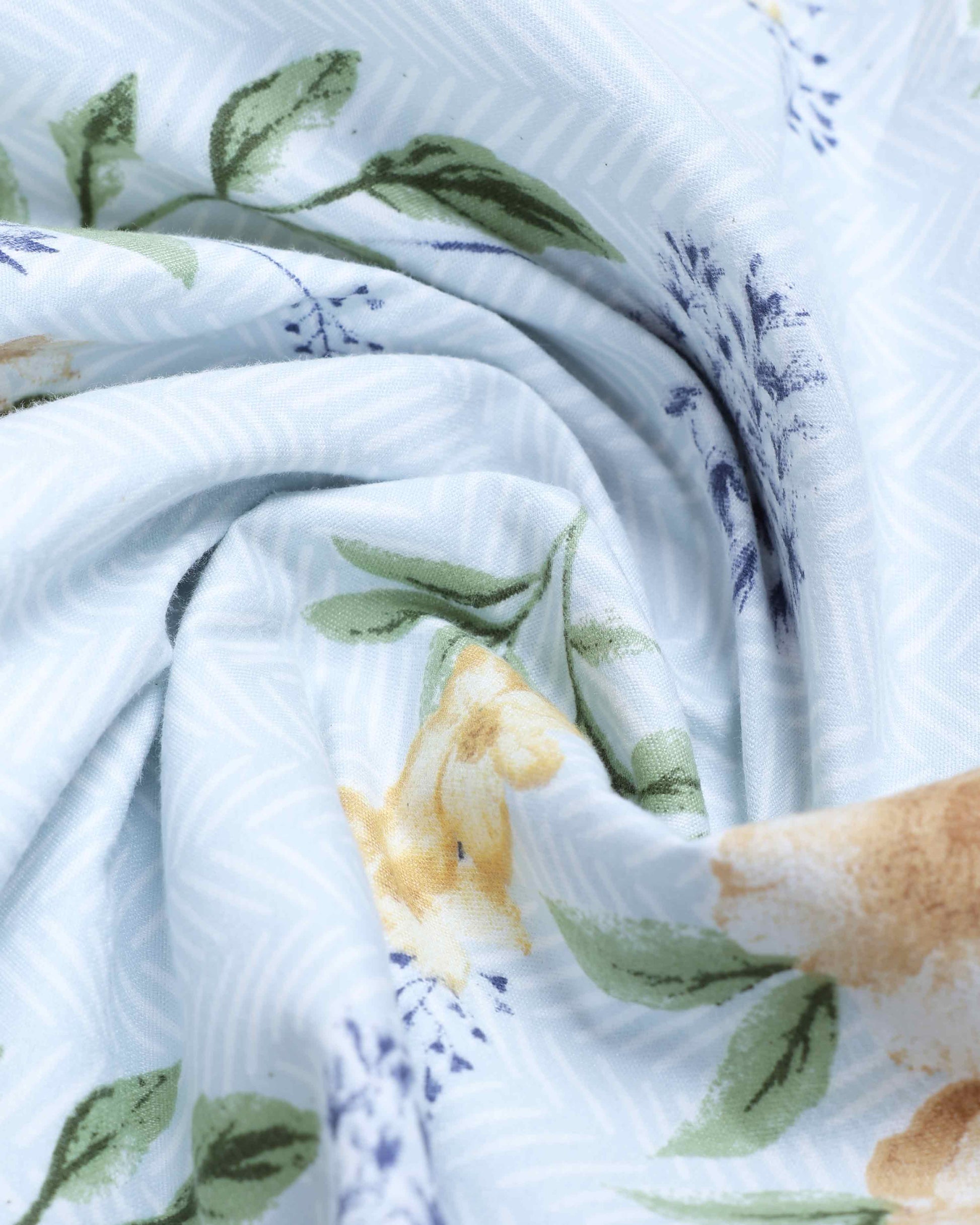 Elegant Floral Pattern Bed Cover with Matching Pillow Cover Set - Blue