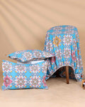 Elegant Intricate Pattern Bed Cover with Matching Pillow Cover Set - Blue