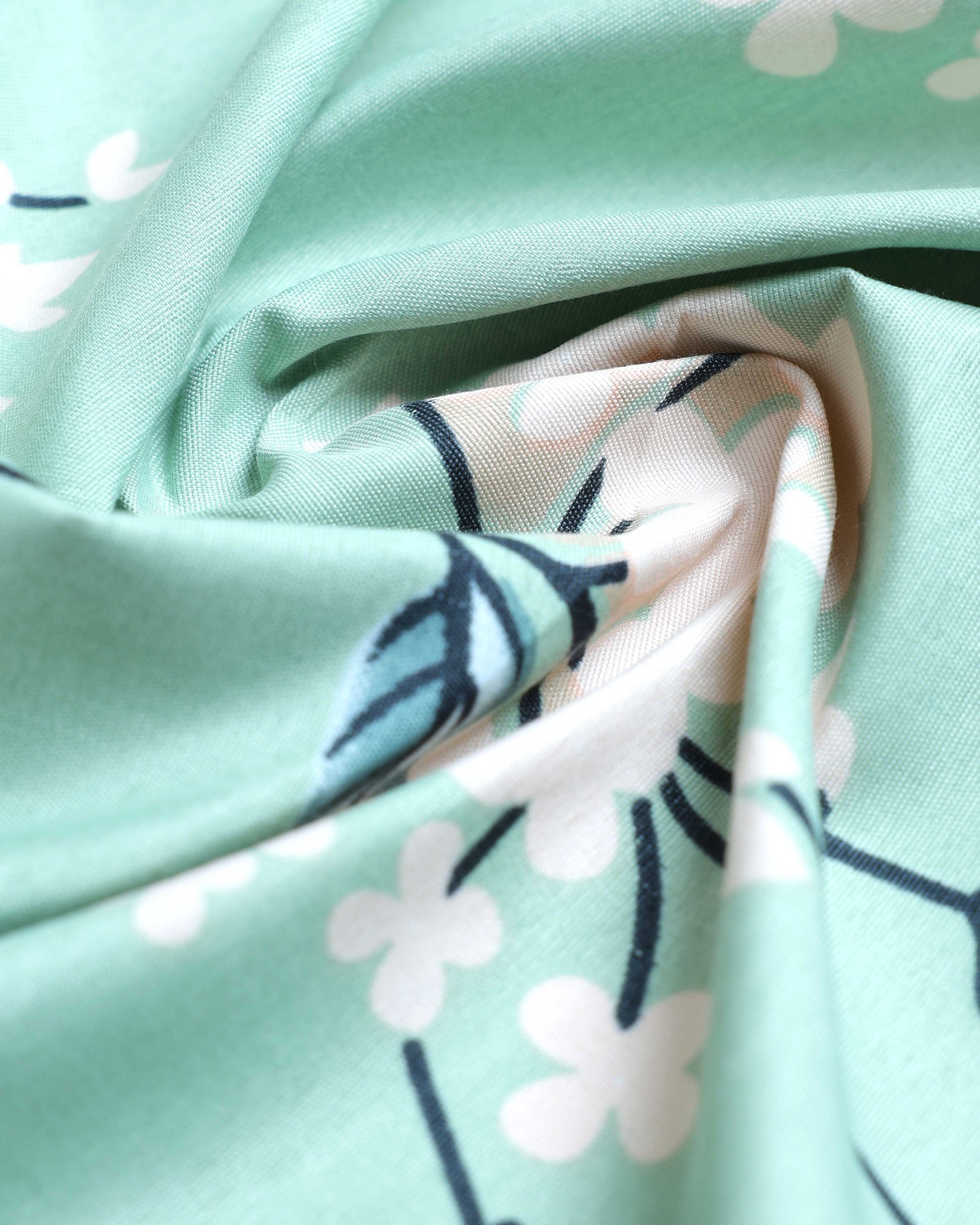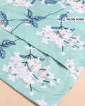 Elegant Floral Print Design Bed Cover with Matching Pillow Cover Set - Green