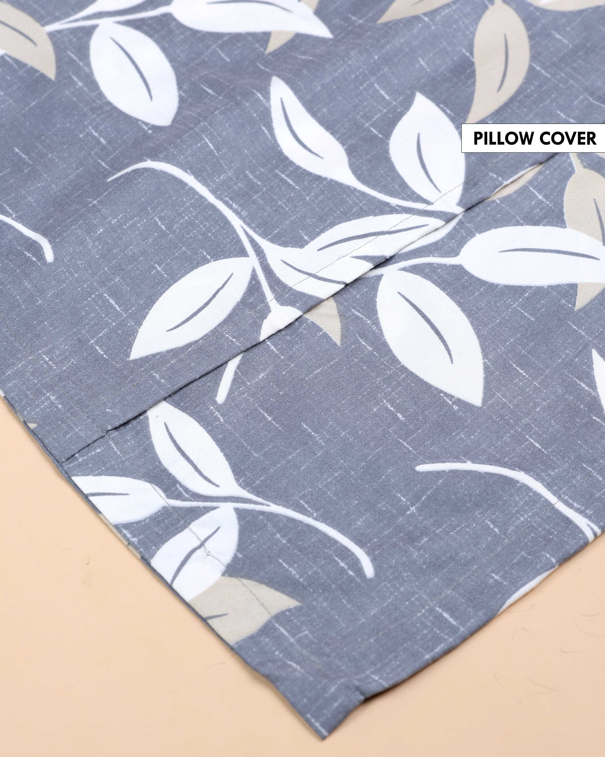 Elegant Leaf Print Design Bed Cover with Matching Pillow Cover Set - Grey