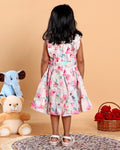Elegant Floral Printed Party Wear Kids Frock with Flared Hemline and Bow Detail - Multi