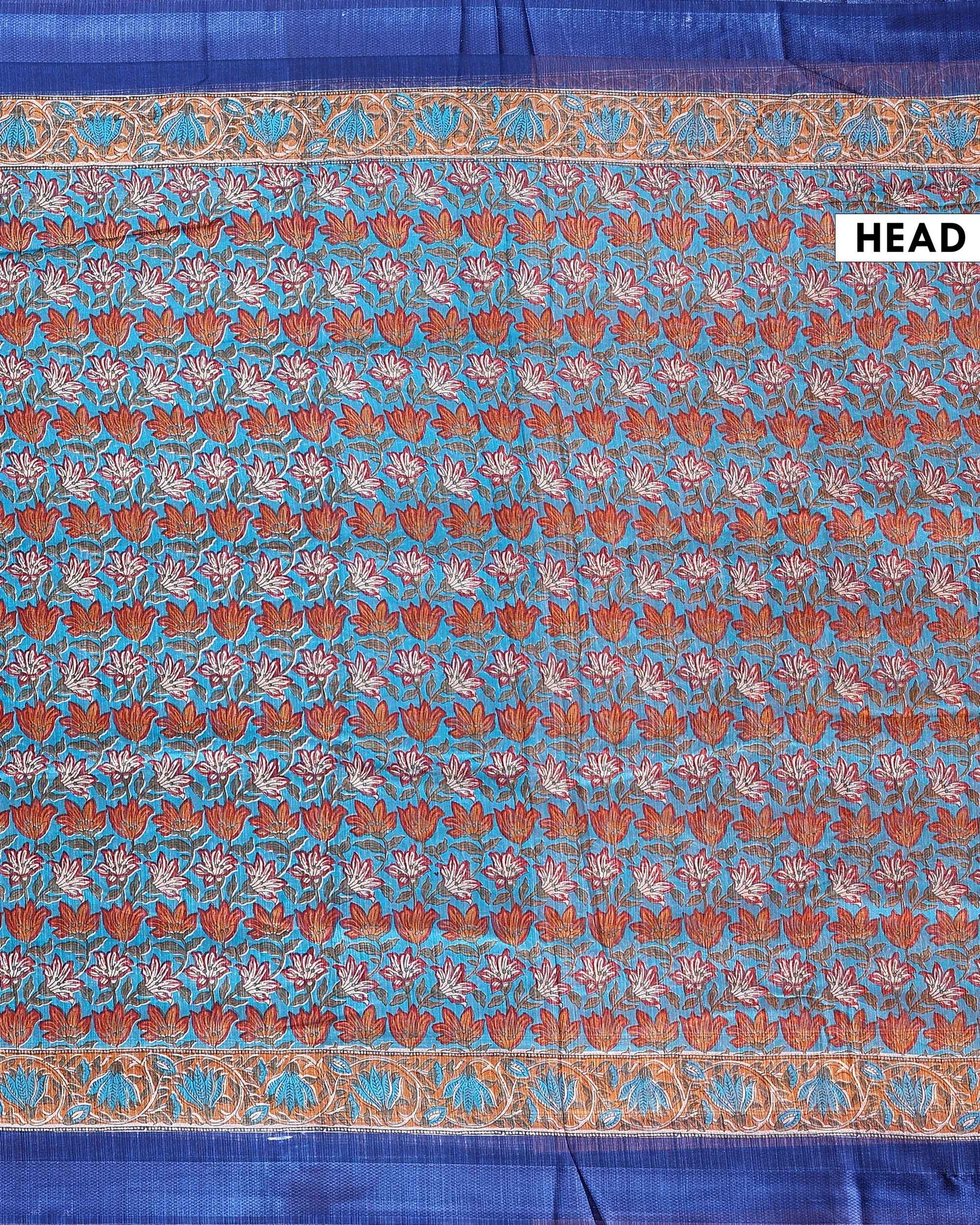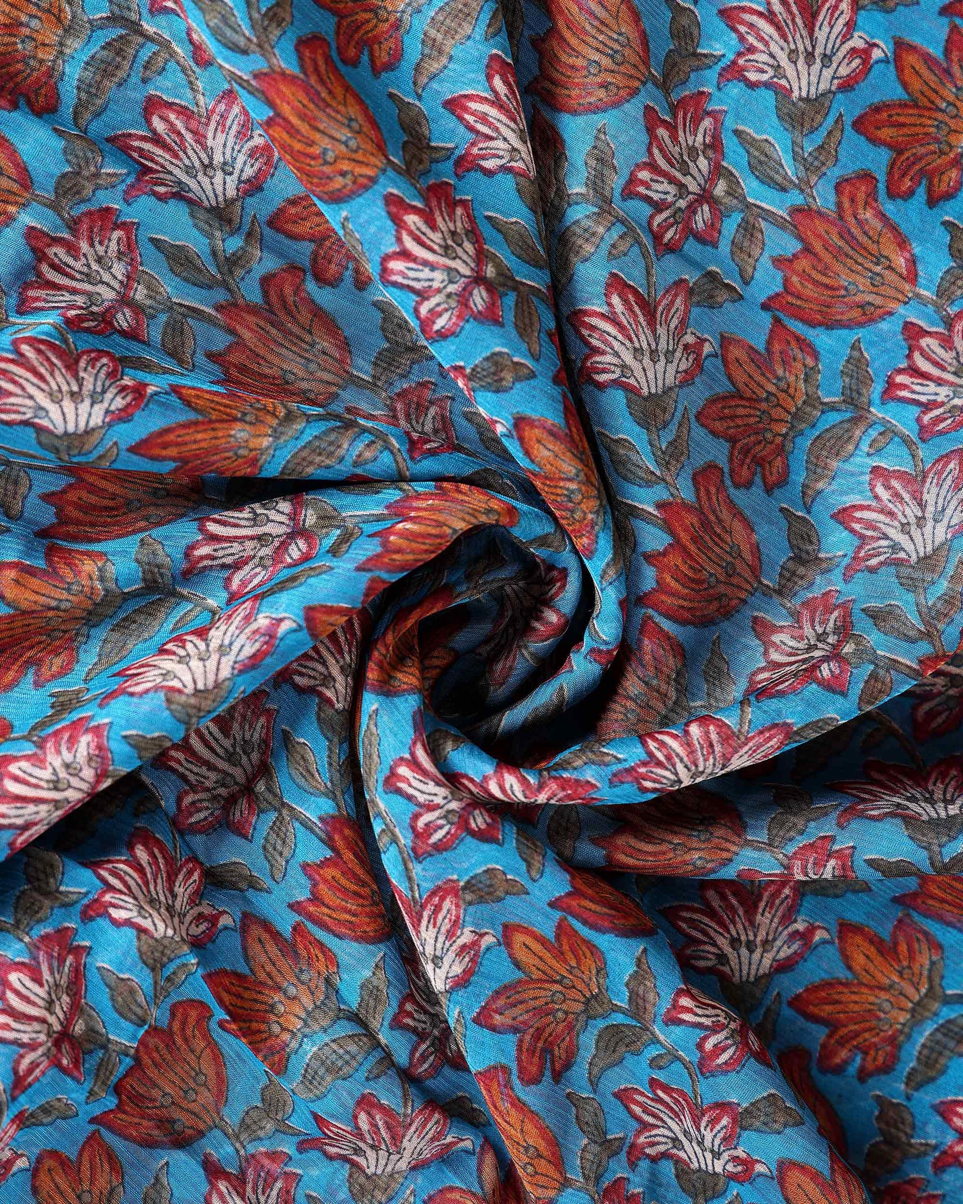 - This elegant Blue Georgette saree vibrant floral prints and a plain border for a graceful and stylish look