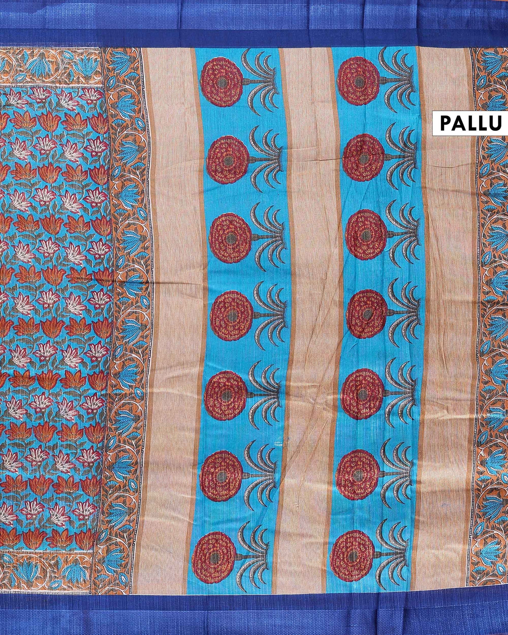 Elegant Georgette Floral Printed Saree With Plain Border - Blue