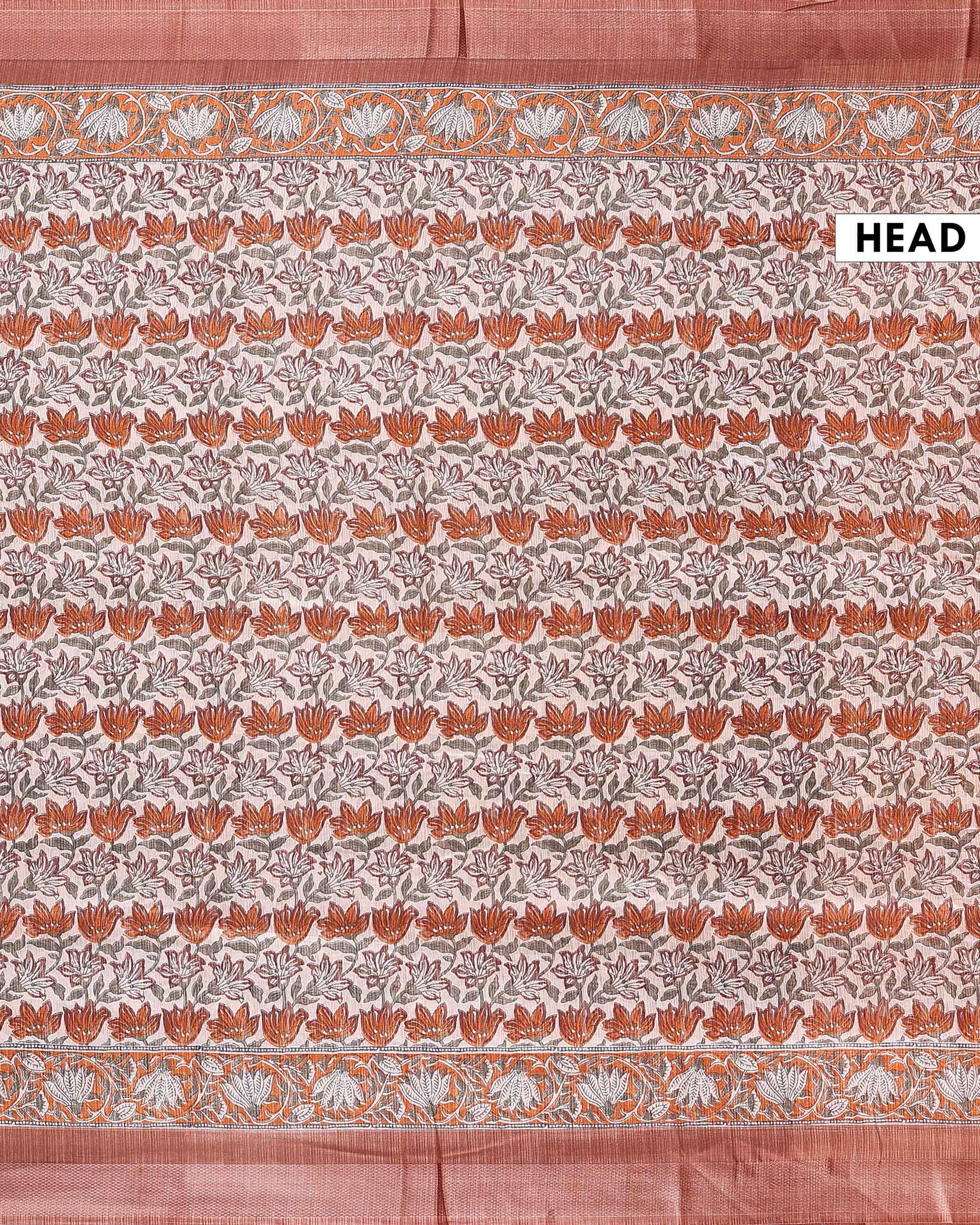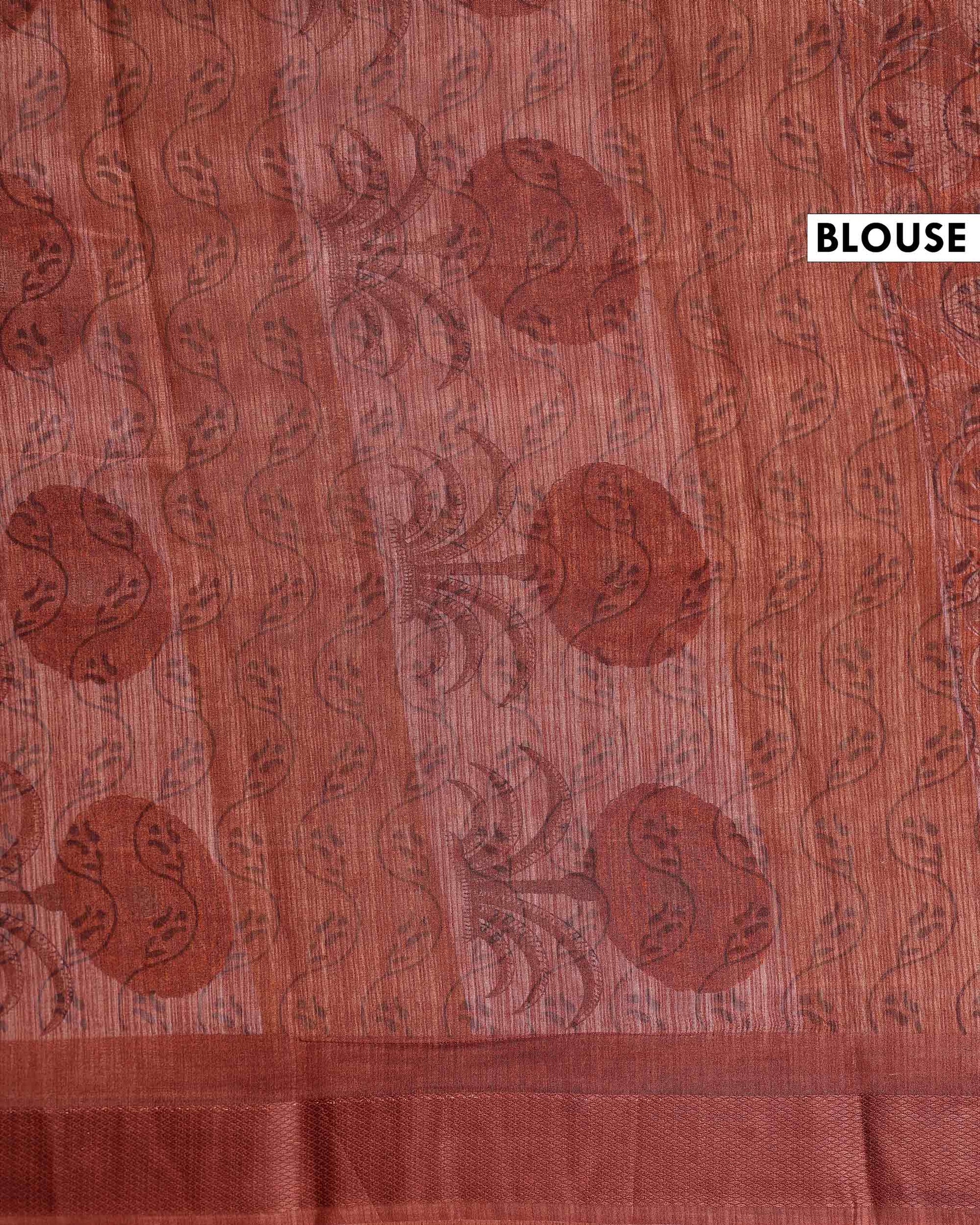 Elegant Georgette Floral Printed Saree With Plain Border - Brown