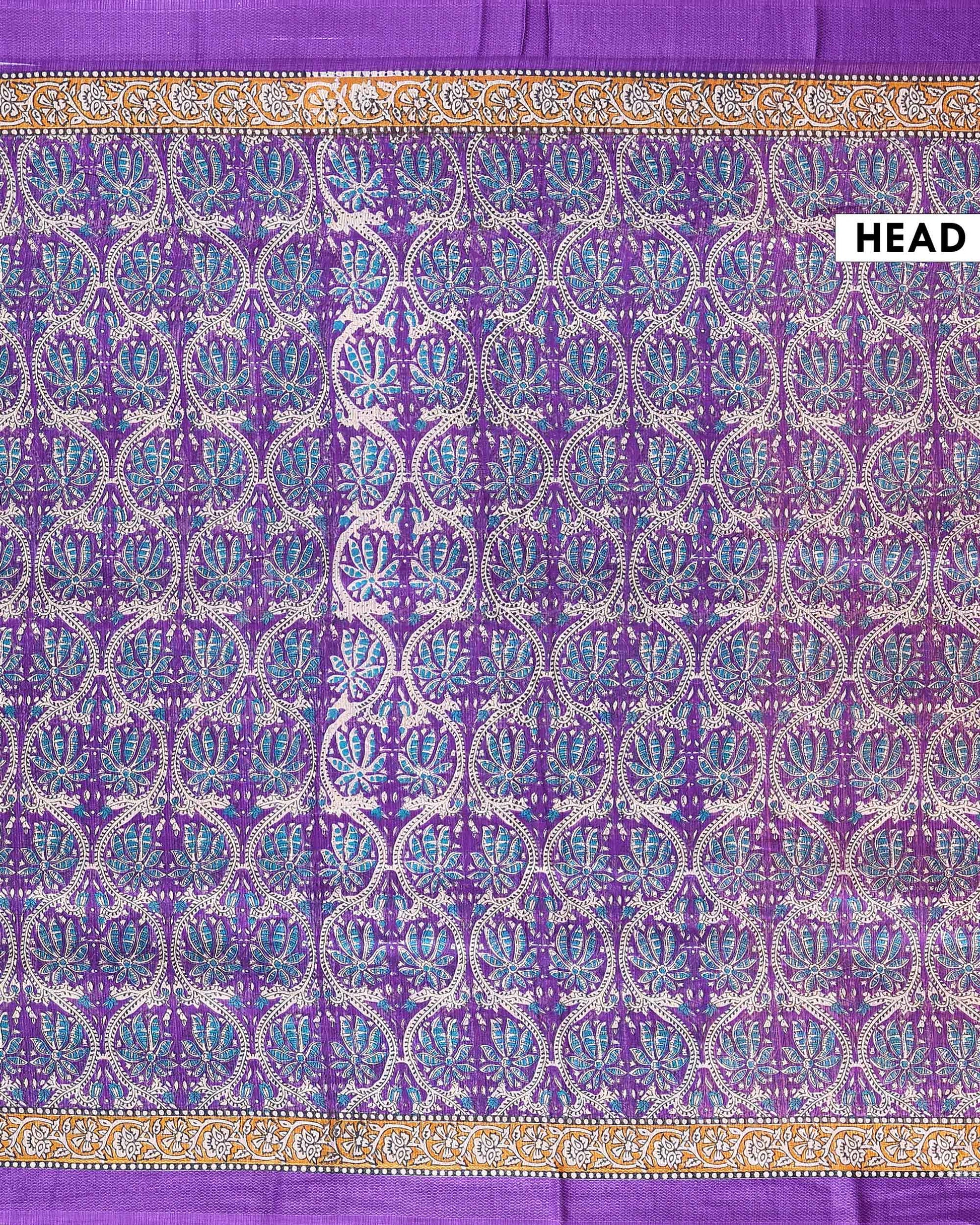 Elegant Georgette Floral Printed Saree With Plain Border - Purple