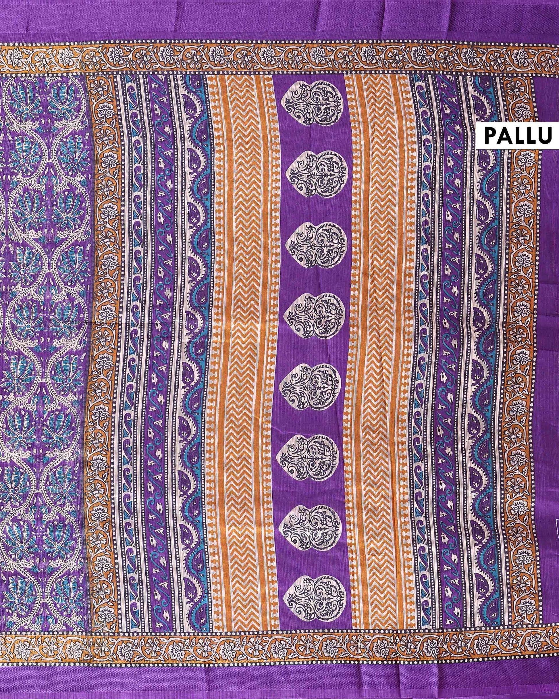 - This elegant Purple Georgette saree vibrant floral prints and a plain border for a graceful and stylish look