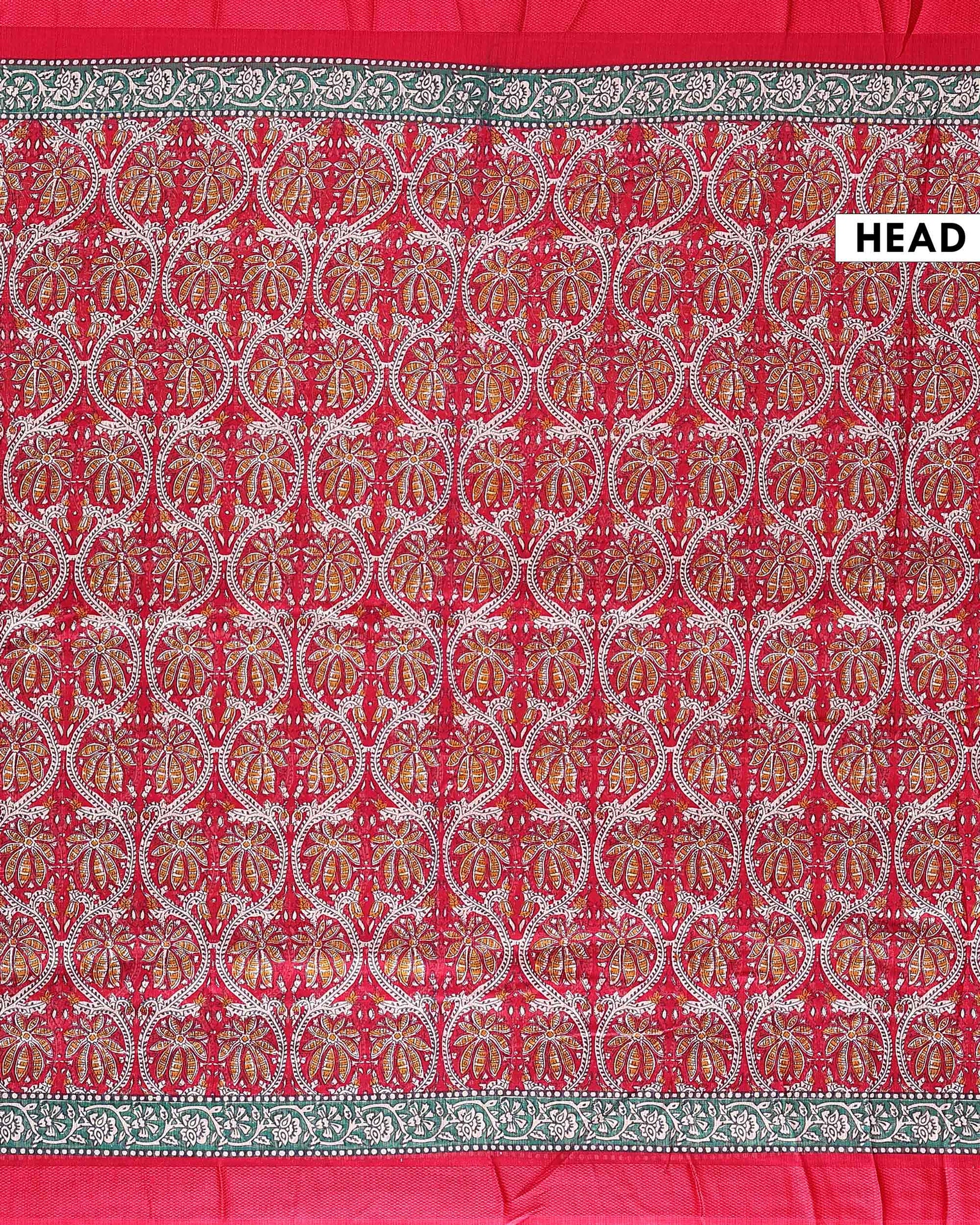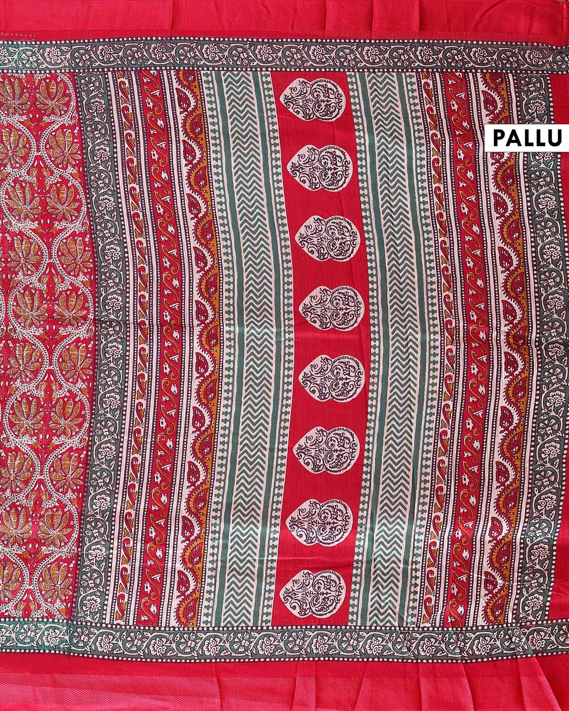 Elegant Georgette Floral Printed Saree With Plain Border - Red