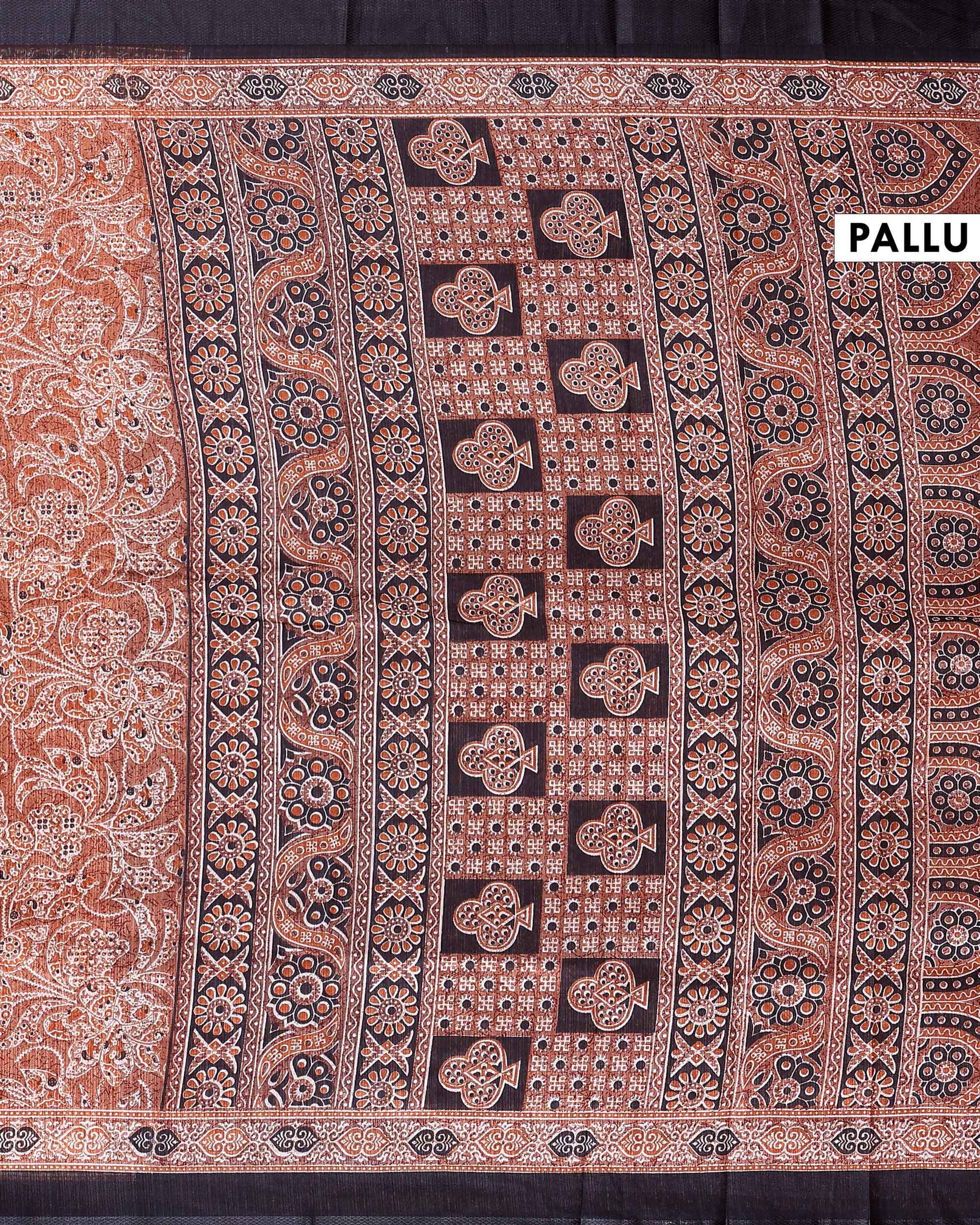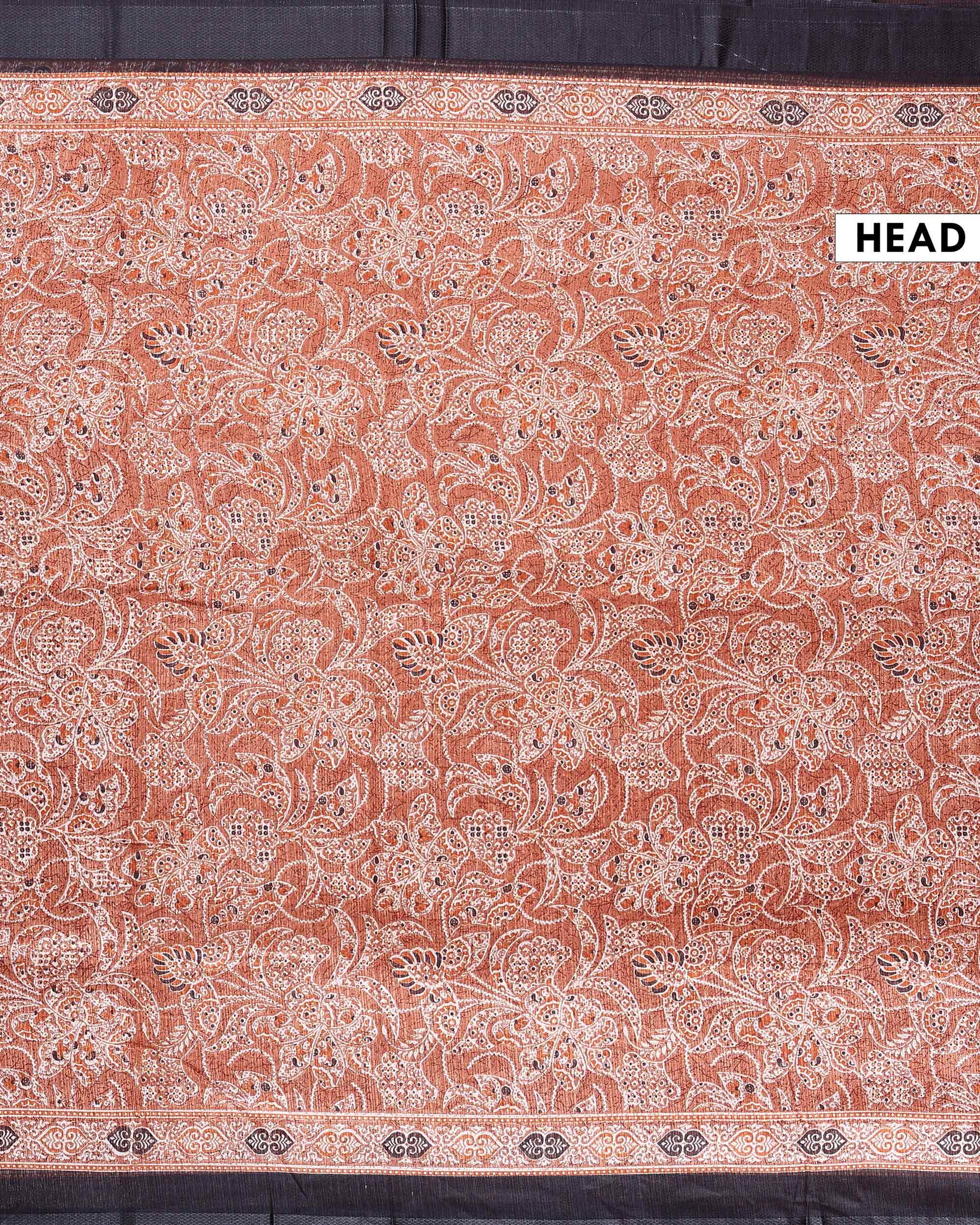 - This elegant Beige saree vibrant floral prints and a plain border for a graceful and stylish look