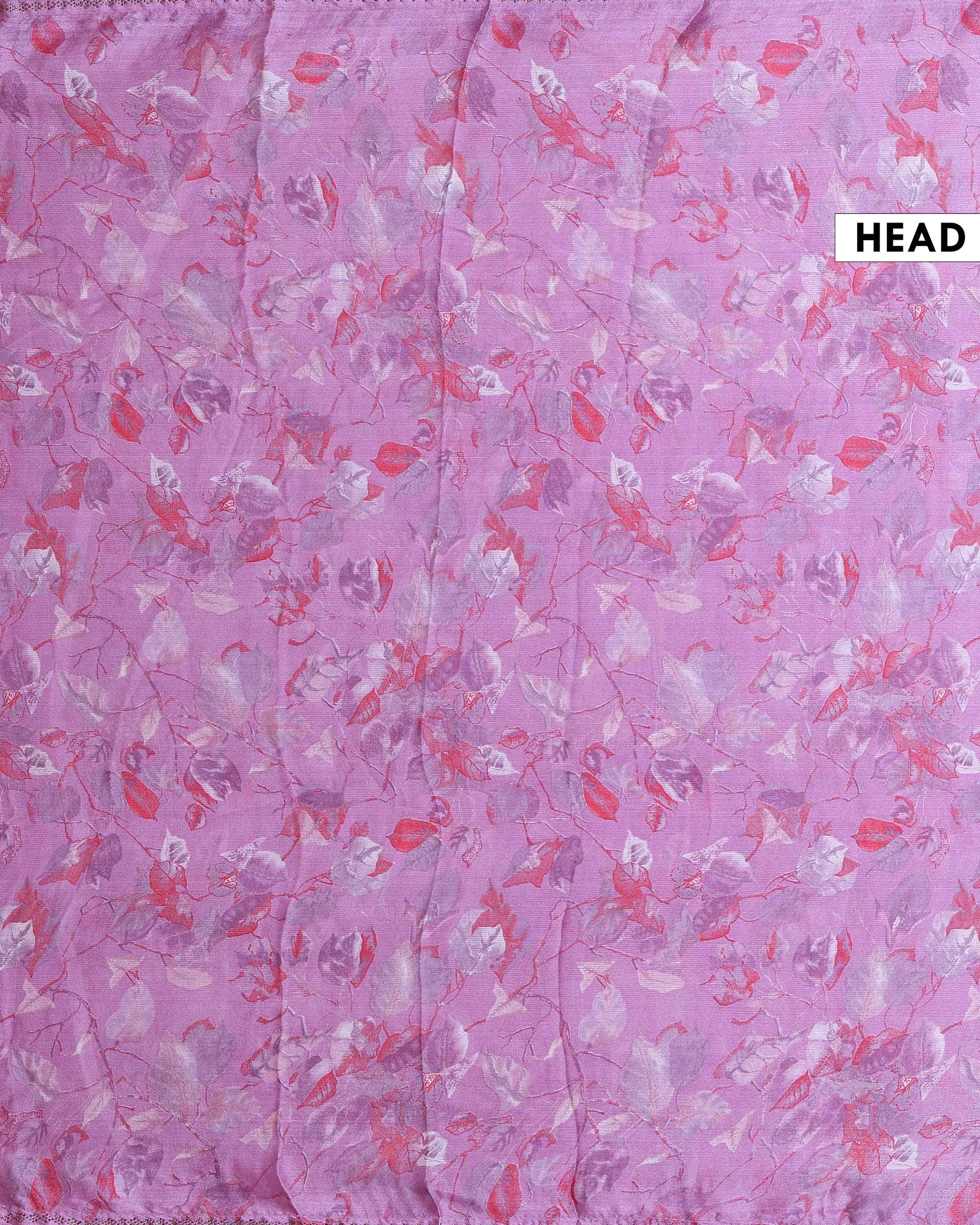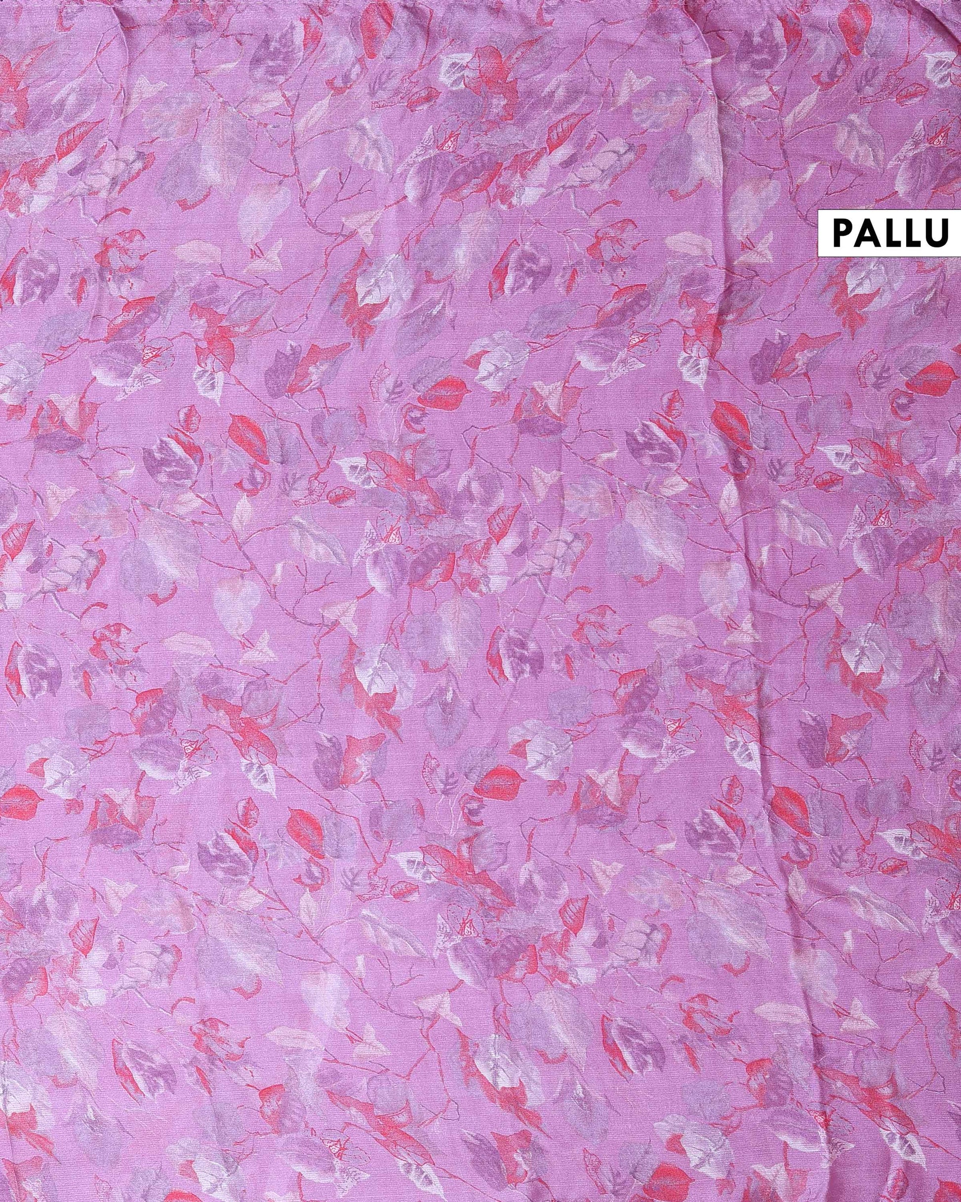- This stunning lavender georgette saree features a delicate floral print, perfect for a elegant look.