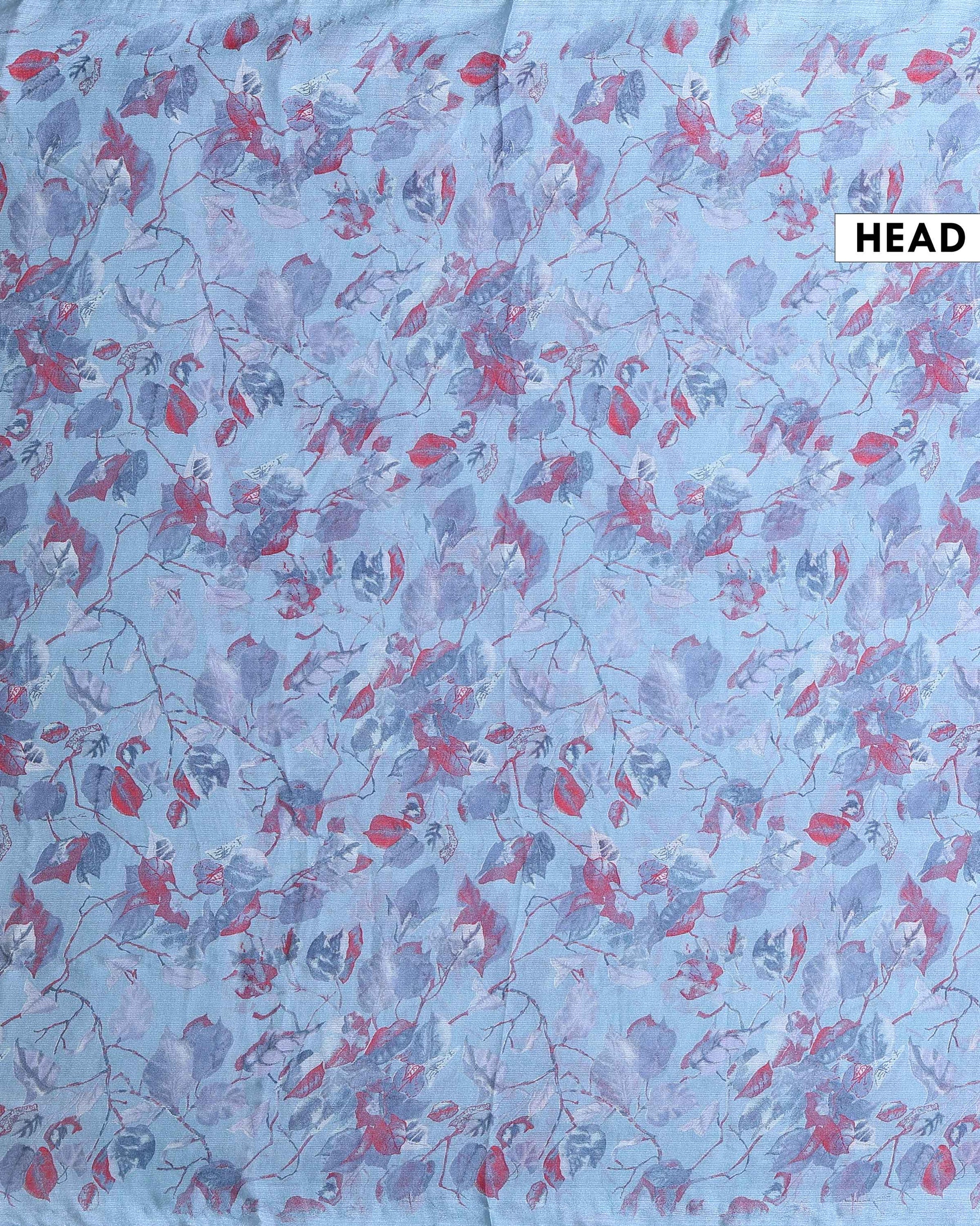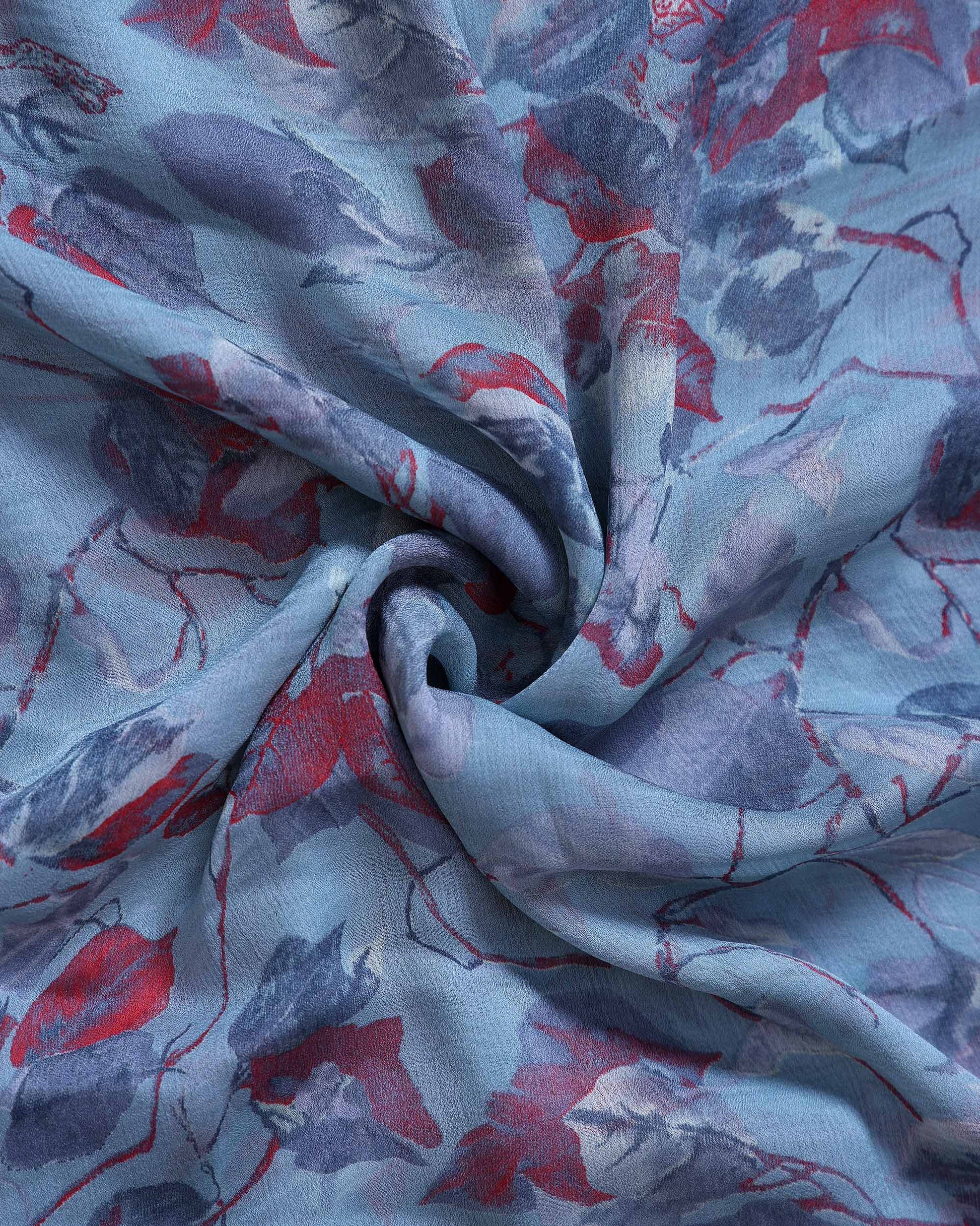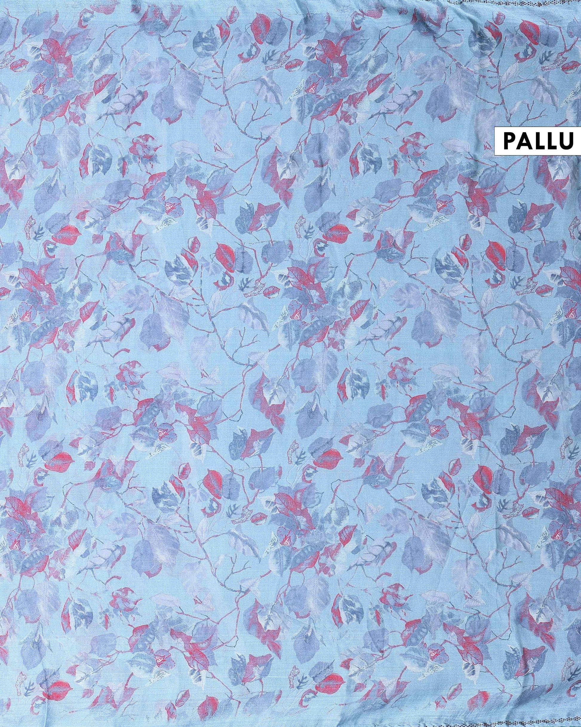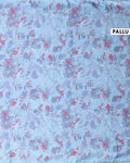 - Elegant Light Blue georgette saree featuring delicate red floral prints and an embellished border.