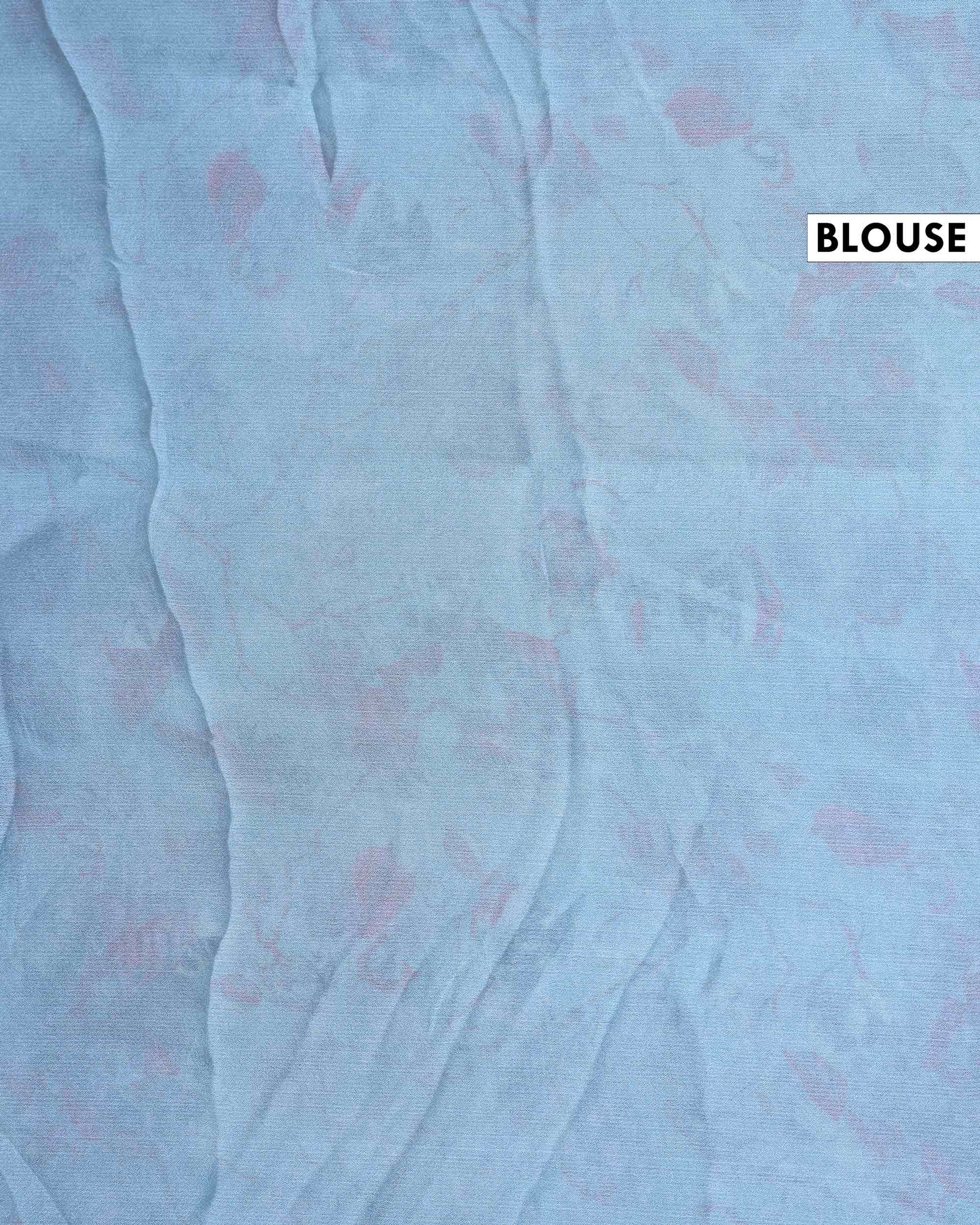 Elegant Georgette Saree with Abstract Floral Print and Delicate Embellished Border - Light Blue