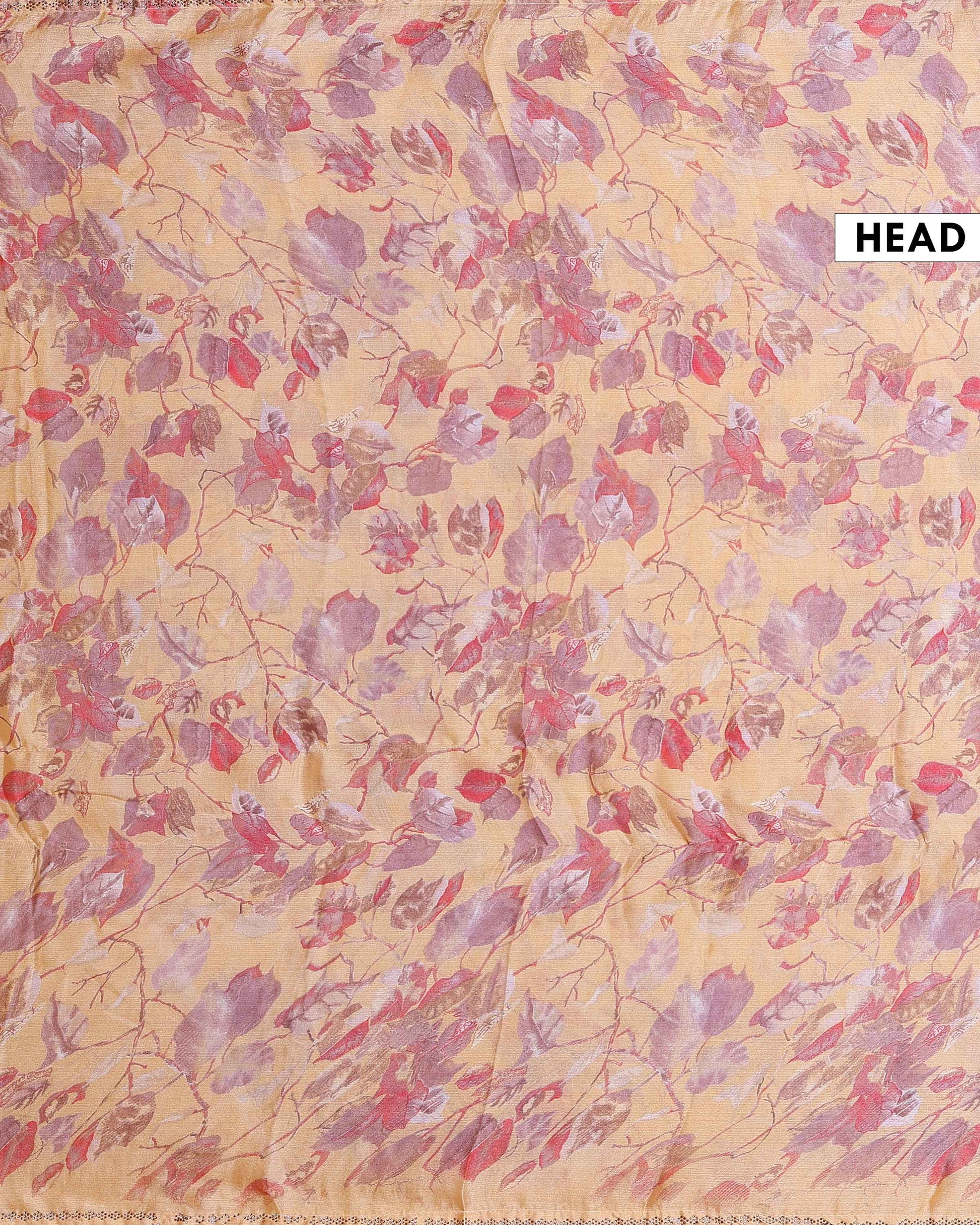 Elegant Georgette Saree with Abstract Floral Print and Delicate Embellished Border - Yellow