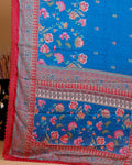 Elegant Georgette Saree with Intricate Floral Embroidery and Traditional Patterned Border - Blue