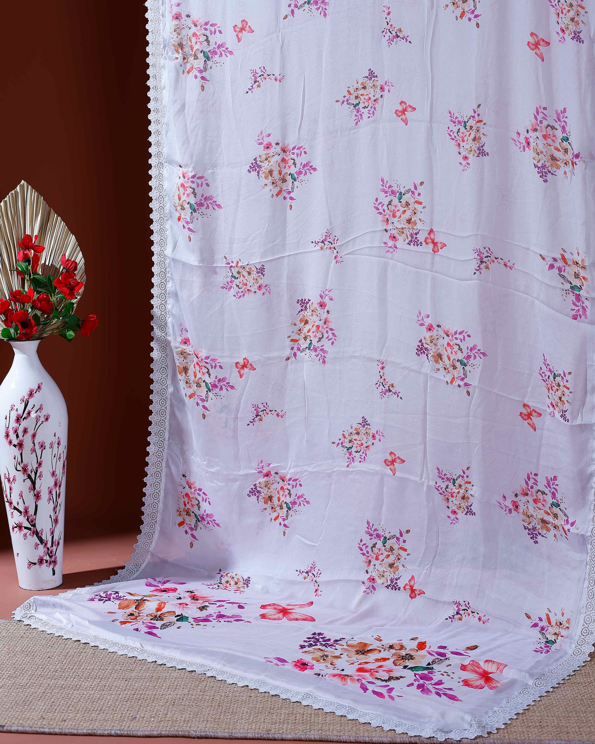Elegant Georgette Saree with Delicate Floral Prints and Intricate Lace Border - Lavender