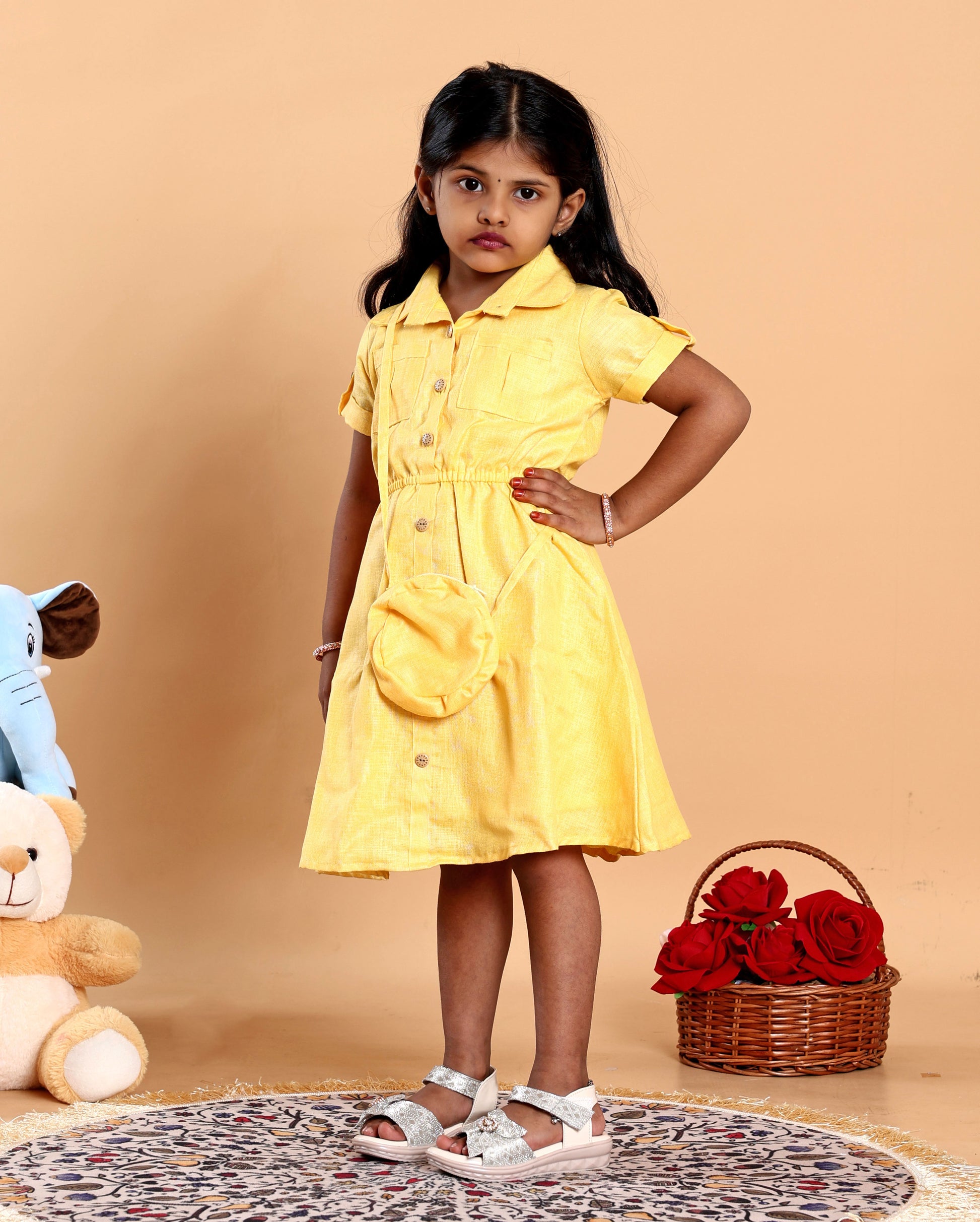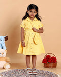 Elegant Girls Everyday Midi Frock with Front Buttons & Elasticated Waist - Yellow