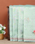 Elegant Hand Embroidered Kantha Work Saree with Delicate Floral Motif and Embroidered Border - Green