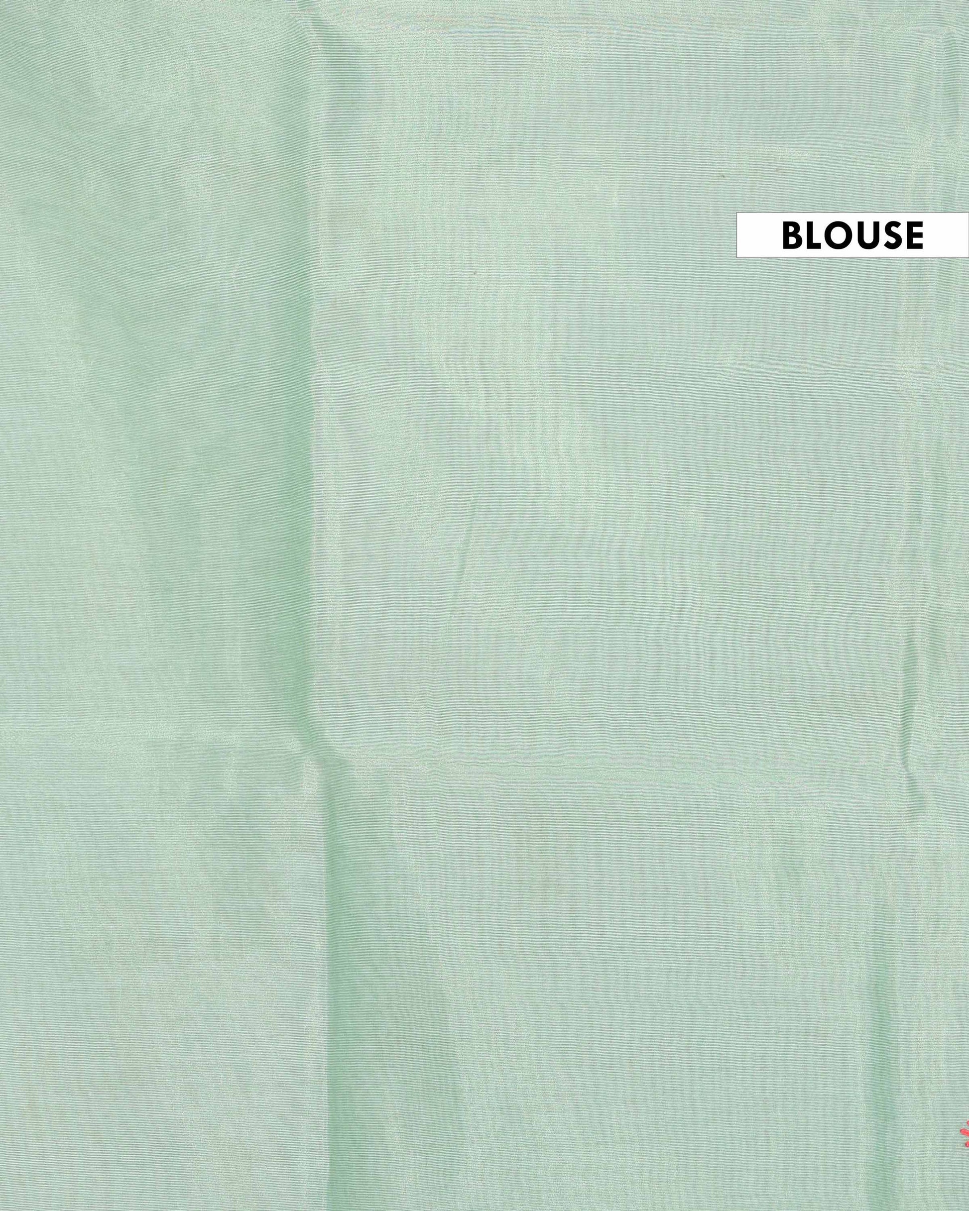 - Crafted from a lightweight Tussar fabric this elegant Sky Blue saree delicate floral motifs for a timeless appeal.