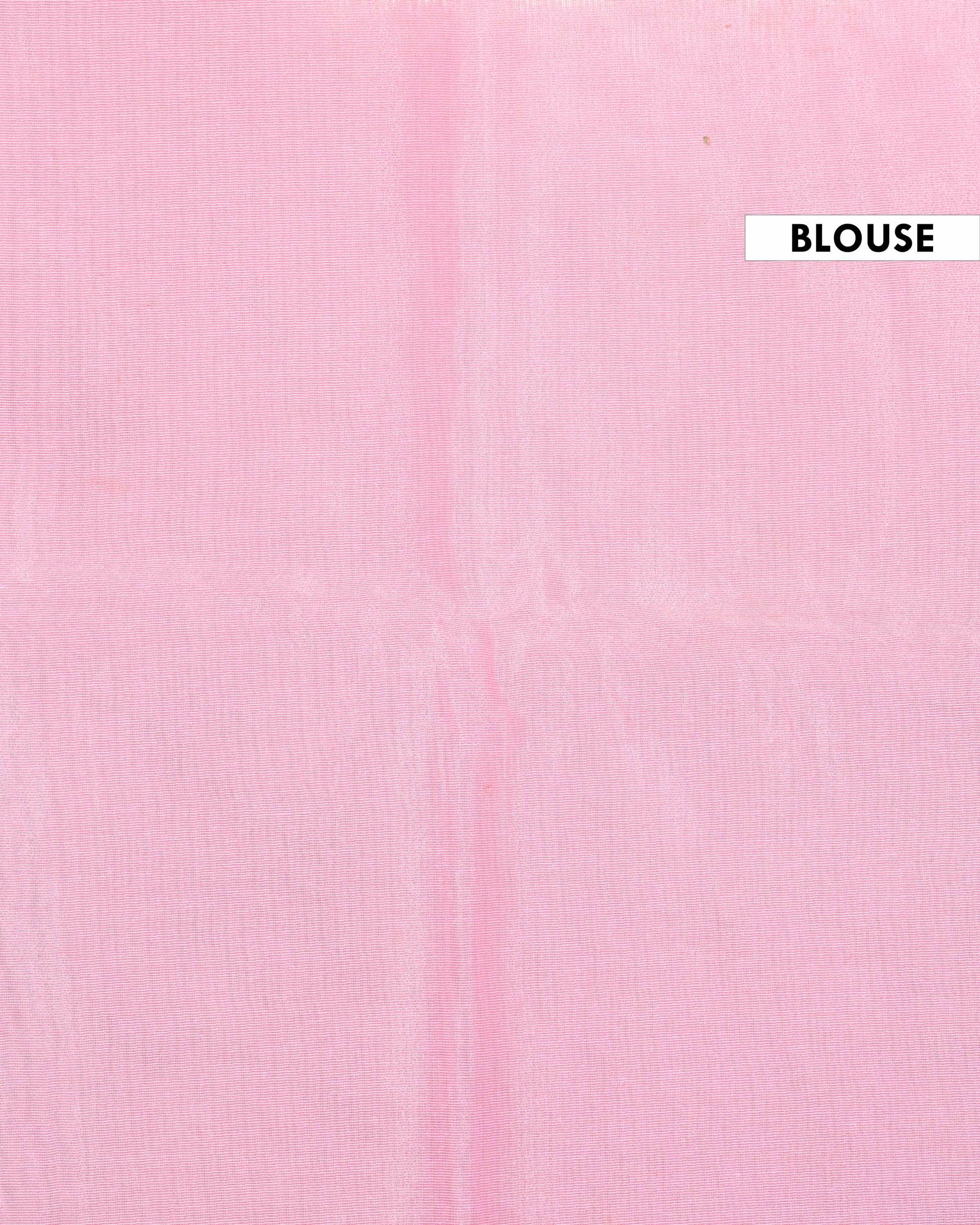 - Crafted from a lightweight Tussar fabric this elegant Pink saree delicate floral motifs for a timeless appeal.