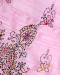 Elegant Hand Embroidered Kantha Work Saree with Intricate Floral and Paisley Motifs and Embroidered Border - Pink