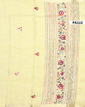 Elegant Hand Embroidered Kantha Work Saree with Intricate Floral Motifs and Subtle Zari Border - Light Green