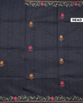 Elegant Hand Embroidered Kantha Work Tussar Saree with Detailed Floral Motifs - Black
