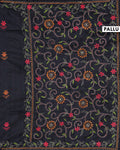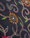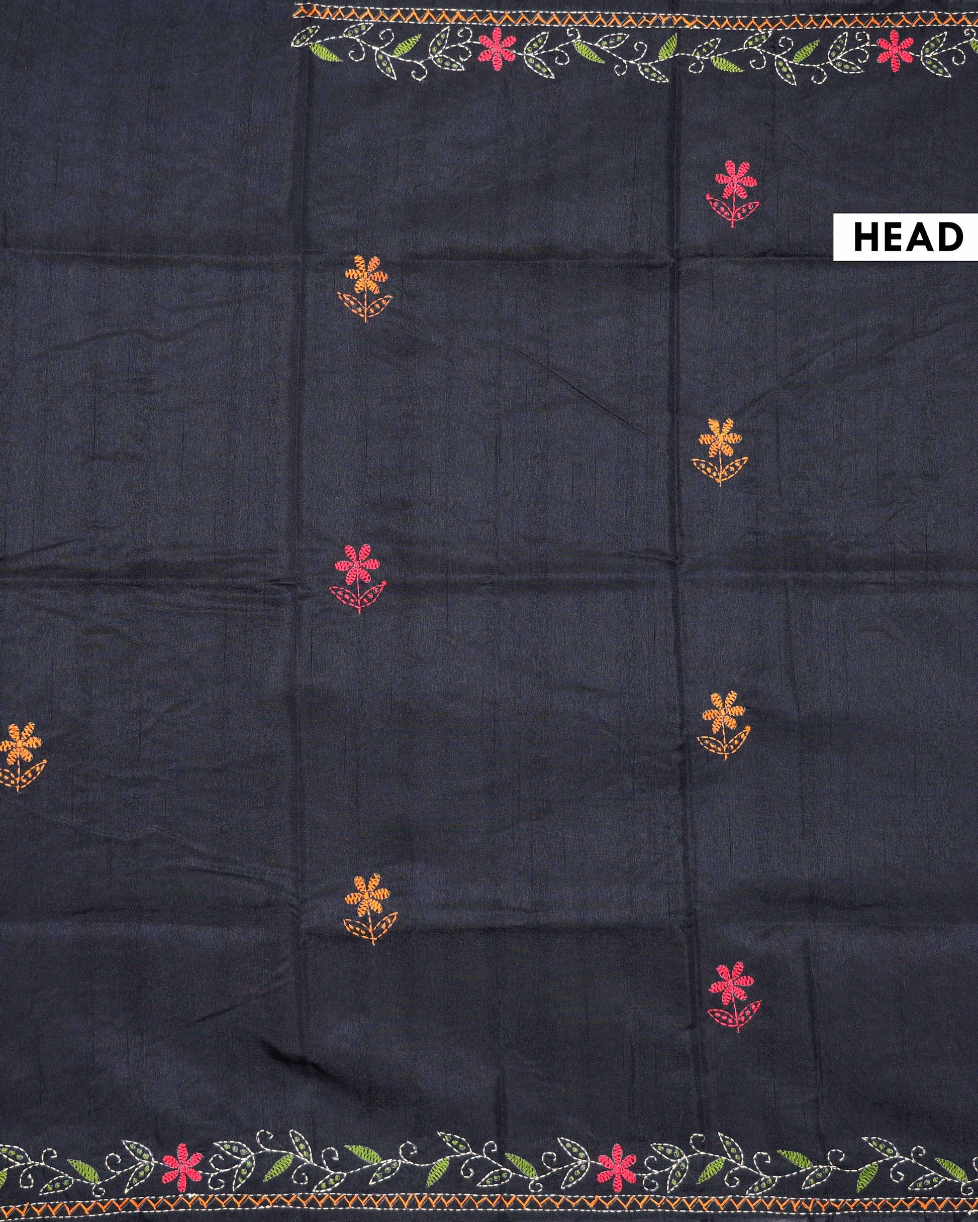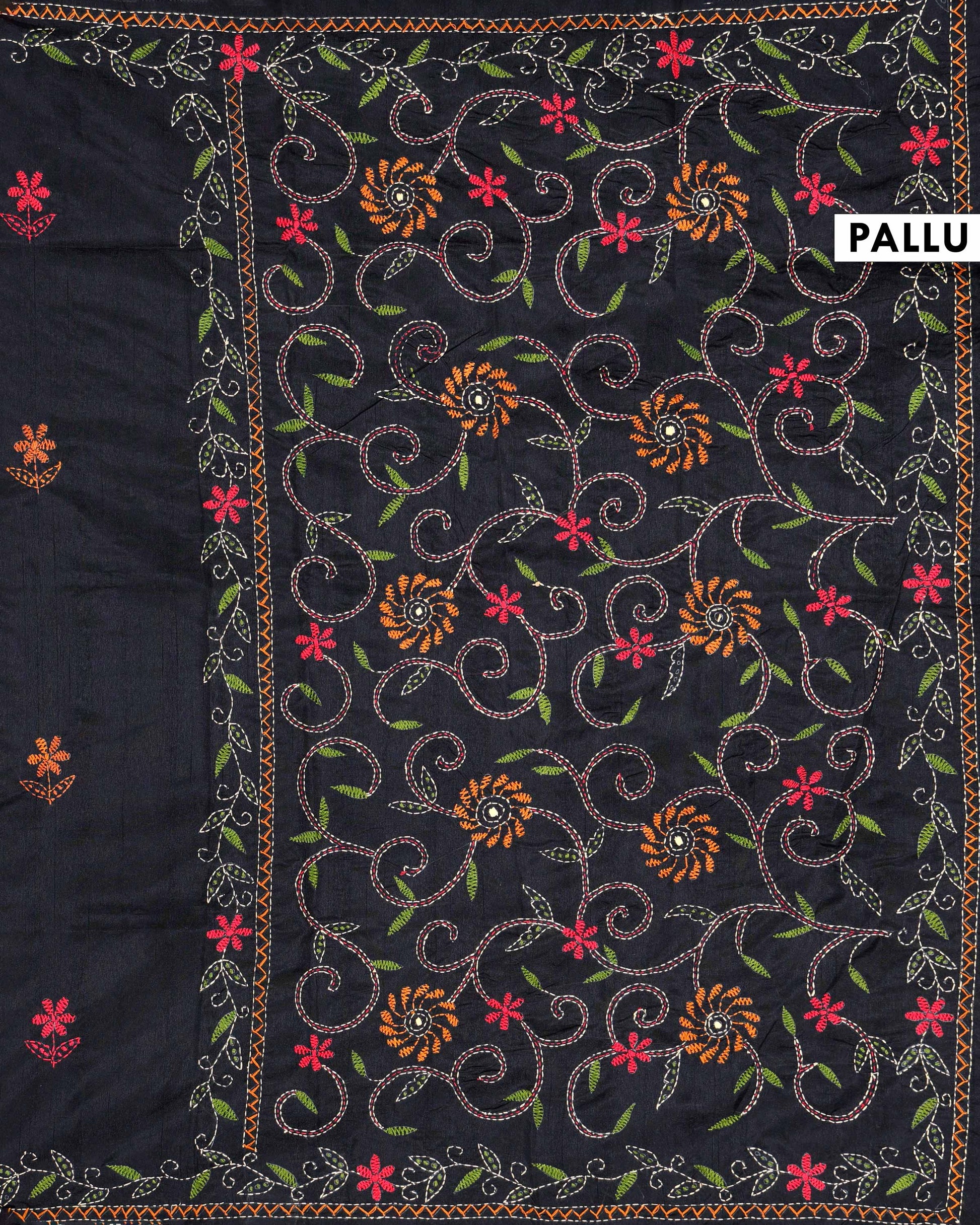 - Discover the timeless elegance of this hand embroidered black Kantha work saree a masterpiece of traditional craftsmanship intricate vibrant floral patterns and running stitches