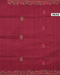 Elegant Hand Embroidered Kantha Work Tussar Saree with Detailed Floral Motifs - Maroon