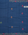 Elegant Hand Embroidered Kantha Work Tussar Saree with Detailed Floral Motifs - Teal Blue