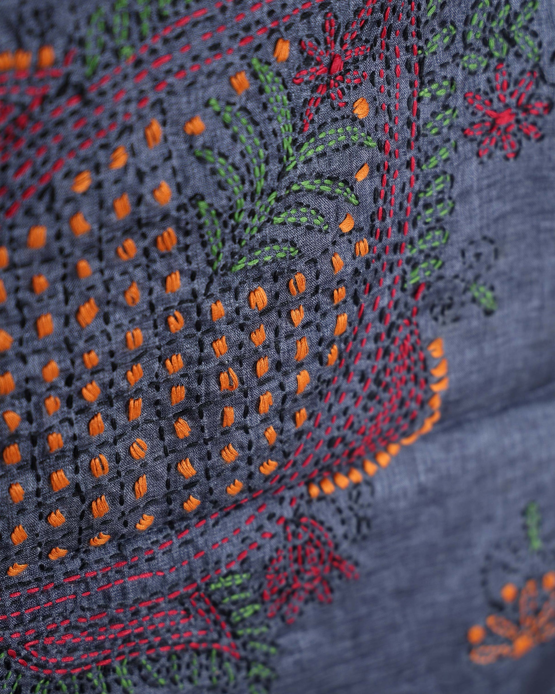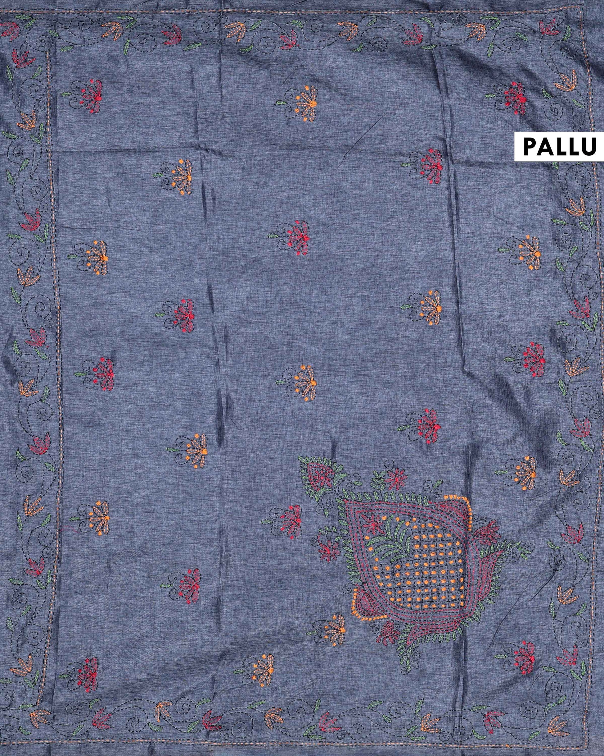 - Discover the legacy of this exquisite dark grey Kantha work saree a masterpiece of patience and precision rooted deeply in the traditions