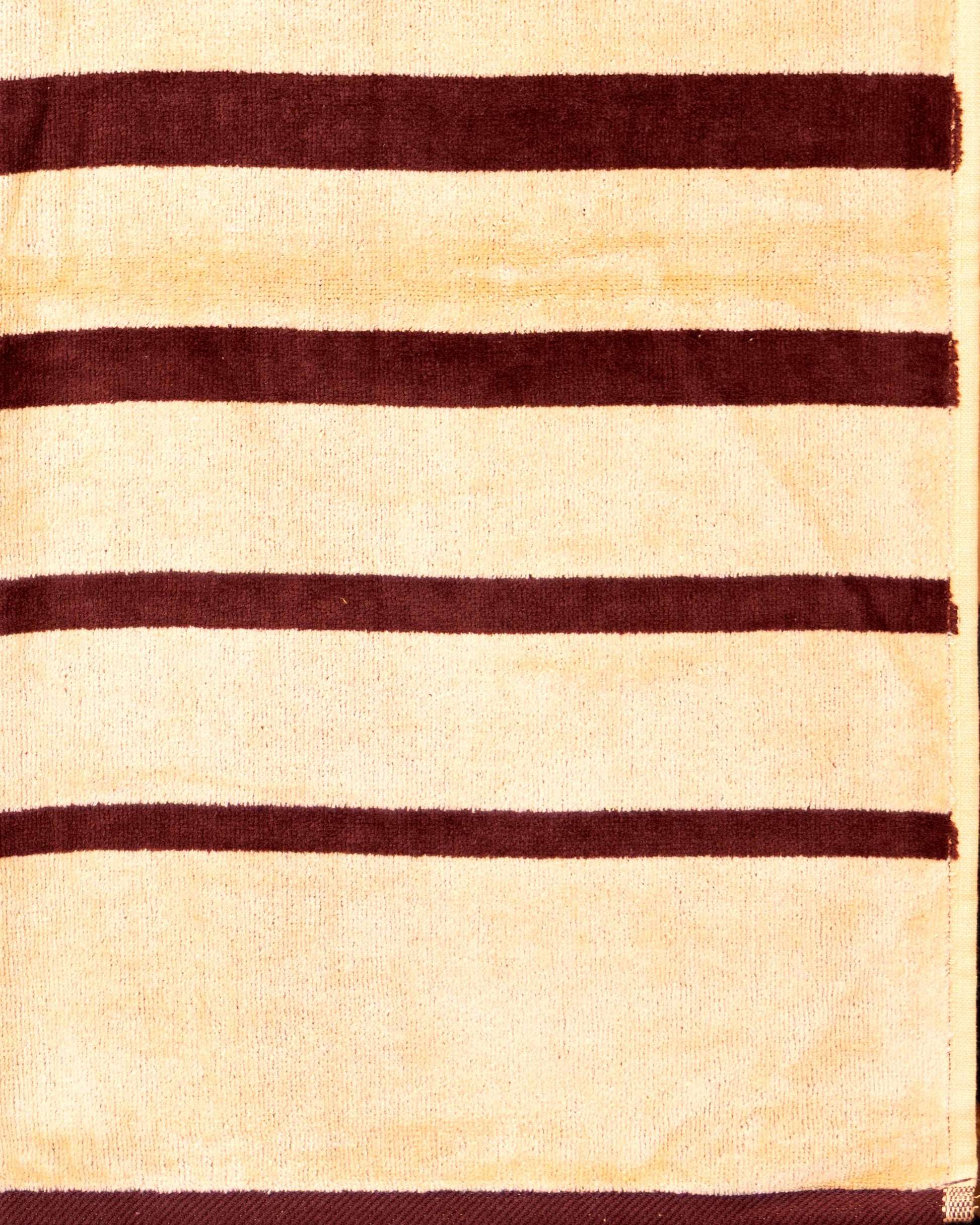 - This hand knotted wool Towel a contemporary striped design in cream and dark red tones, offering a stylish to any room.
