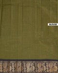 - This stunning handloom Chettinad cotton saree in vibrant Green body a contrasting Navy border , offering a perfect blend of tradition and comfort.