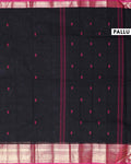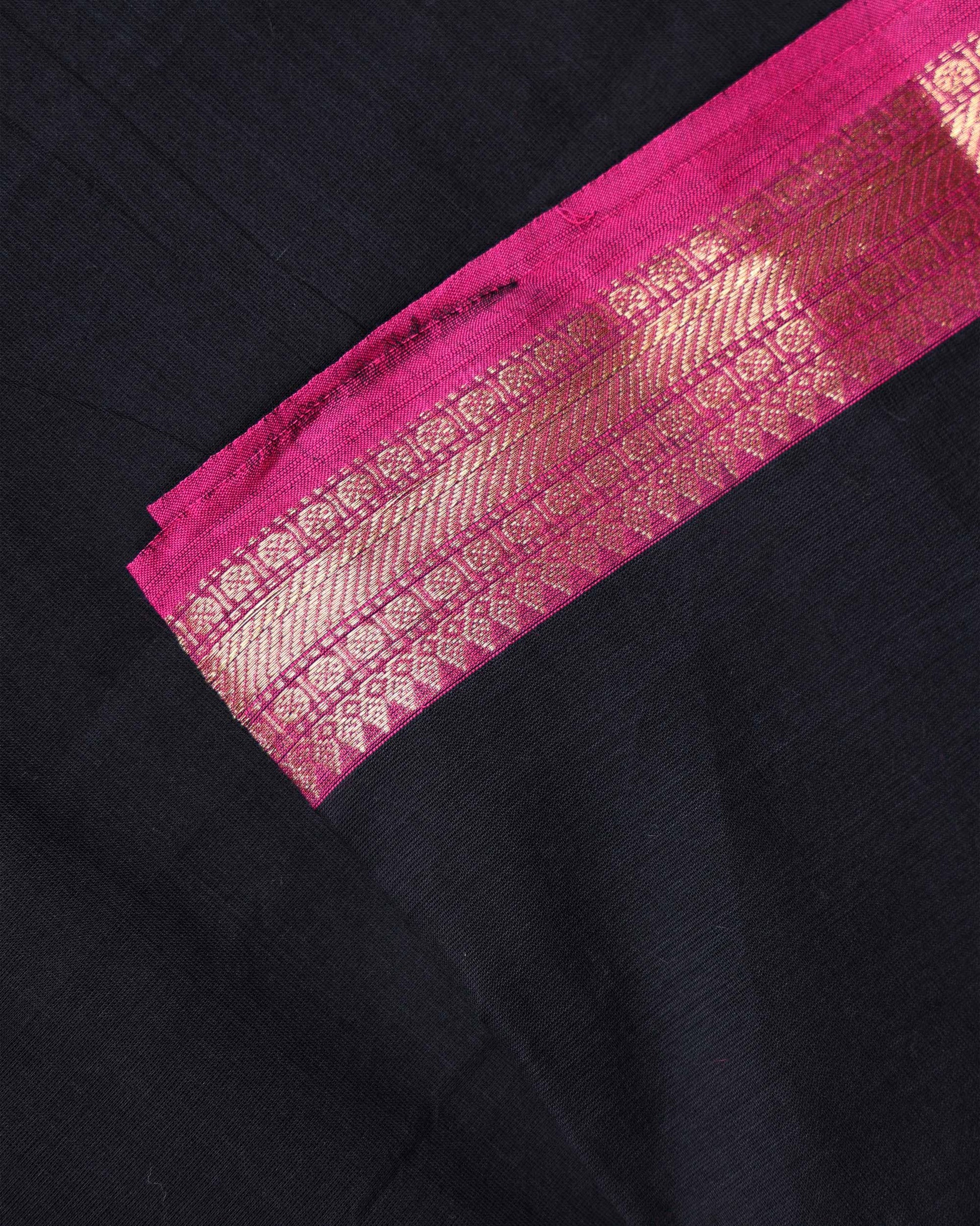 Elegant Handloom Chettinad Cotton Saree with Minimalist Body and Traditional Zari Woven Contrast Border - Black