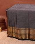 Elegant Handloom Chettinad Cotton Saree with Plain Body and Woven Zari Border - Grey