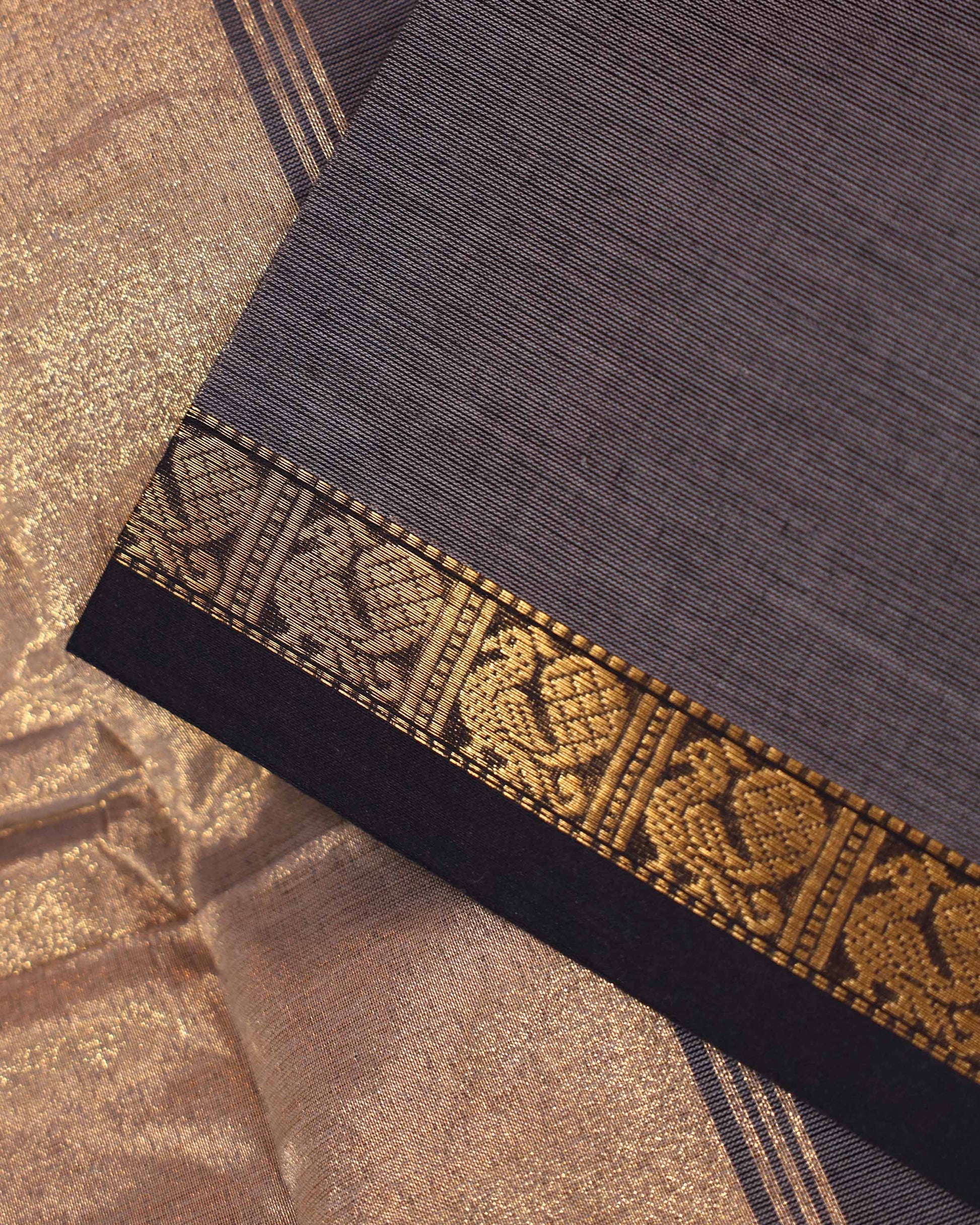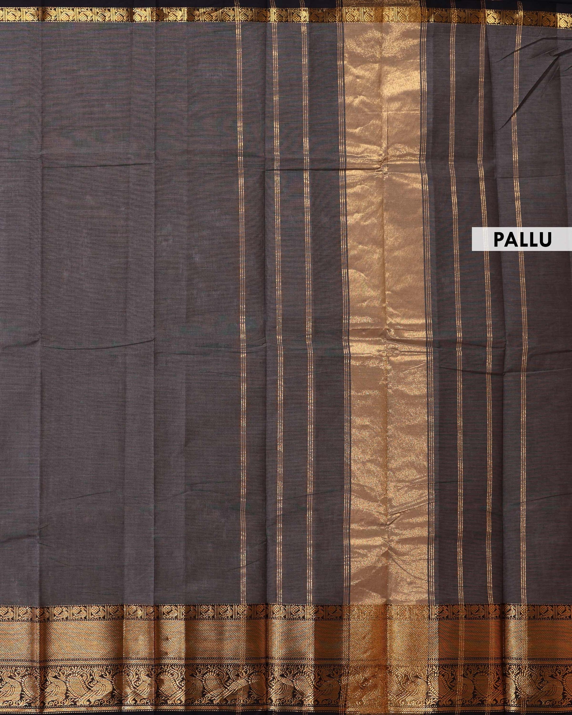 - This stunning handloom Chettinad cotton saree in vibrant Grey body a contrasting Black border , offering a perfect blend of tradition and comfort.