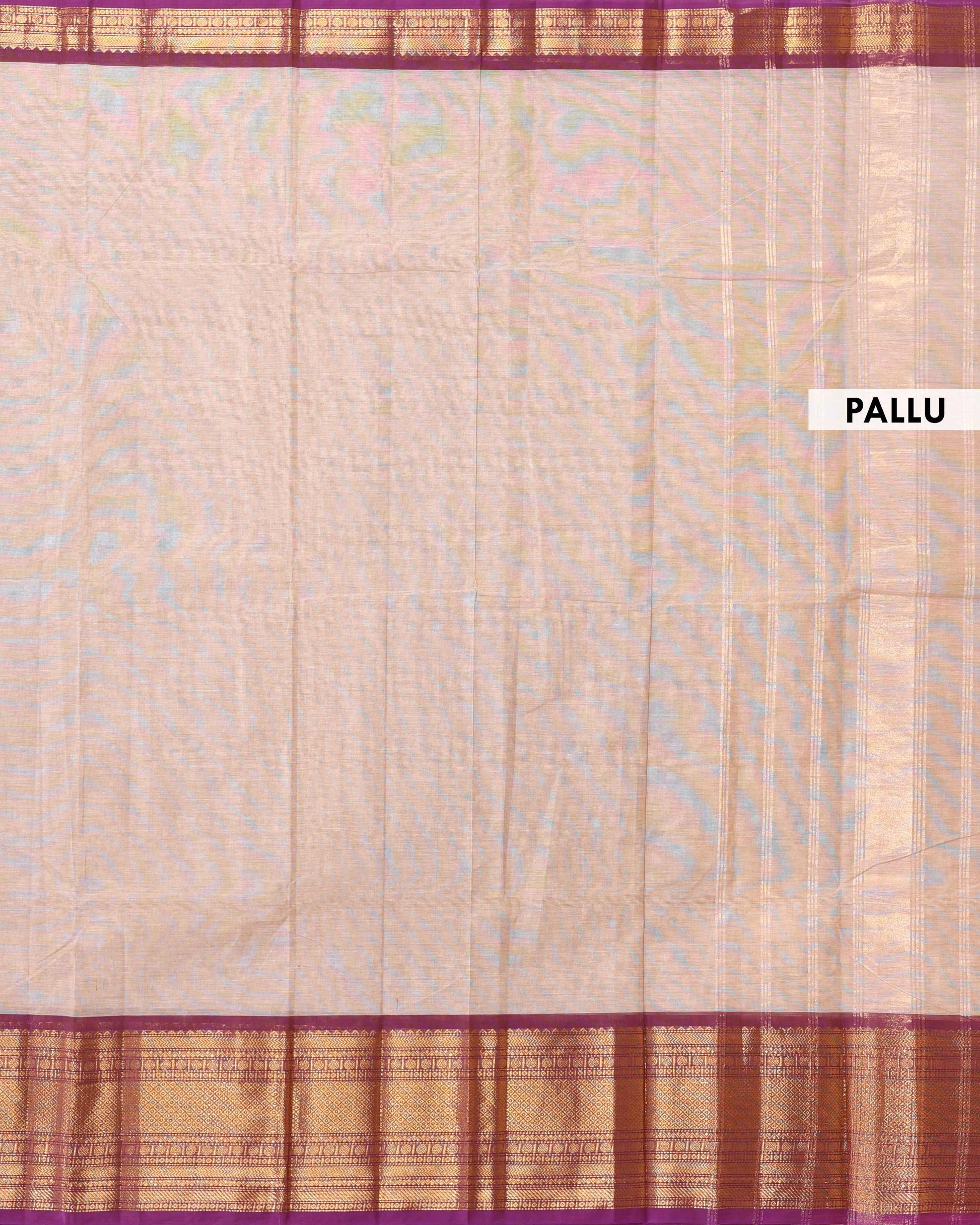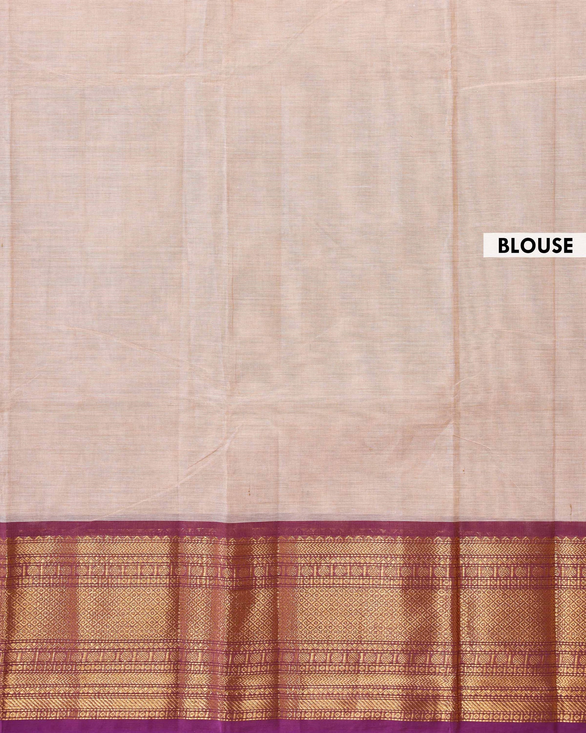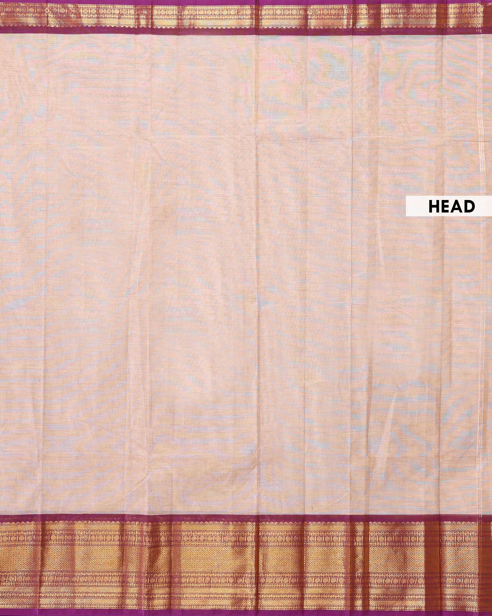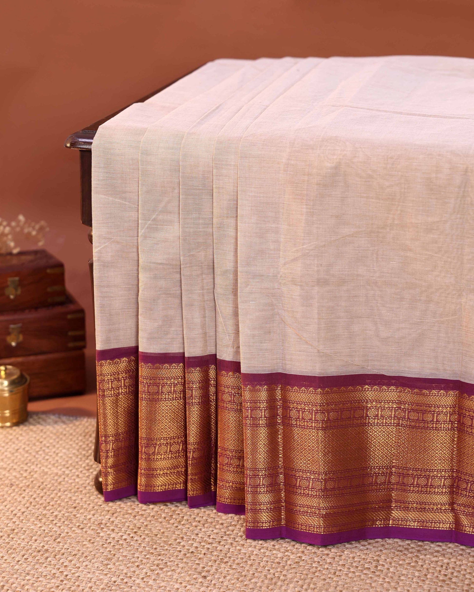 Elegant Handloom Chettinad Cotton Saree with Plain Body and Zari Woven Border - Beige