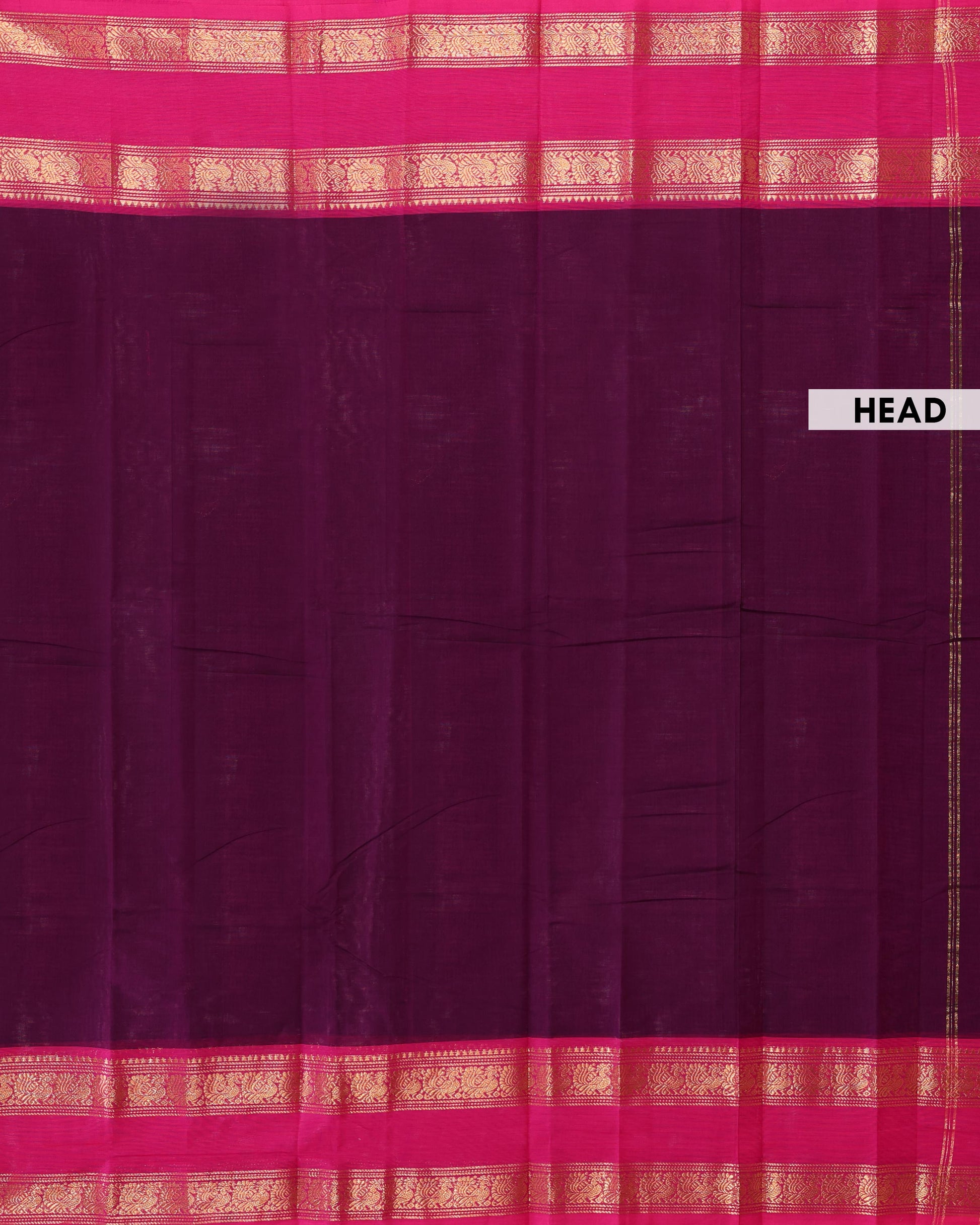 Elegant Handloom Chettinad Cotton Saree with Plain Body and Zari Woven Rettapet Border - Purple