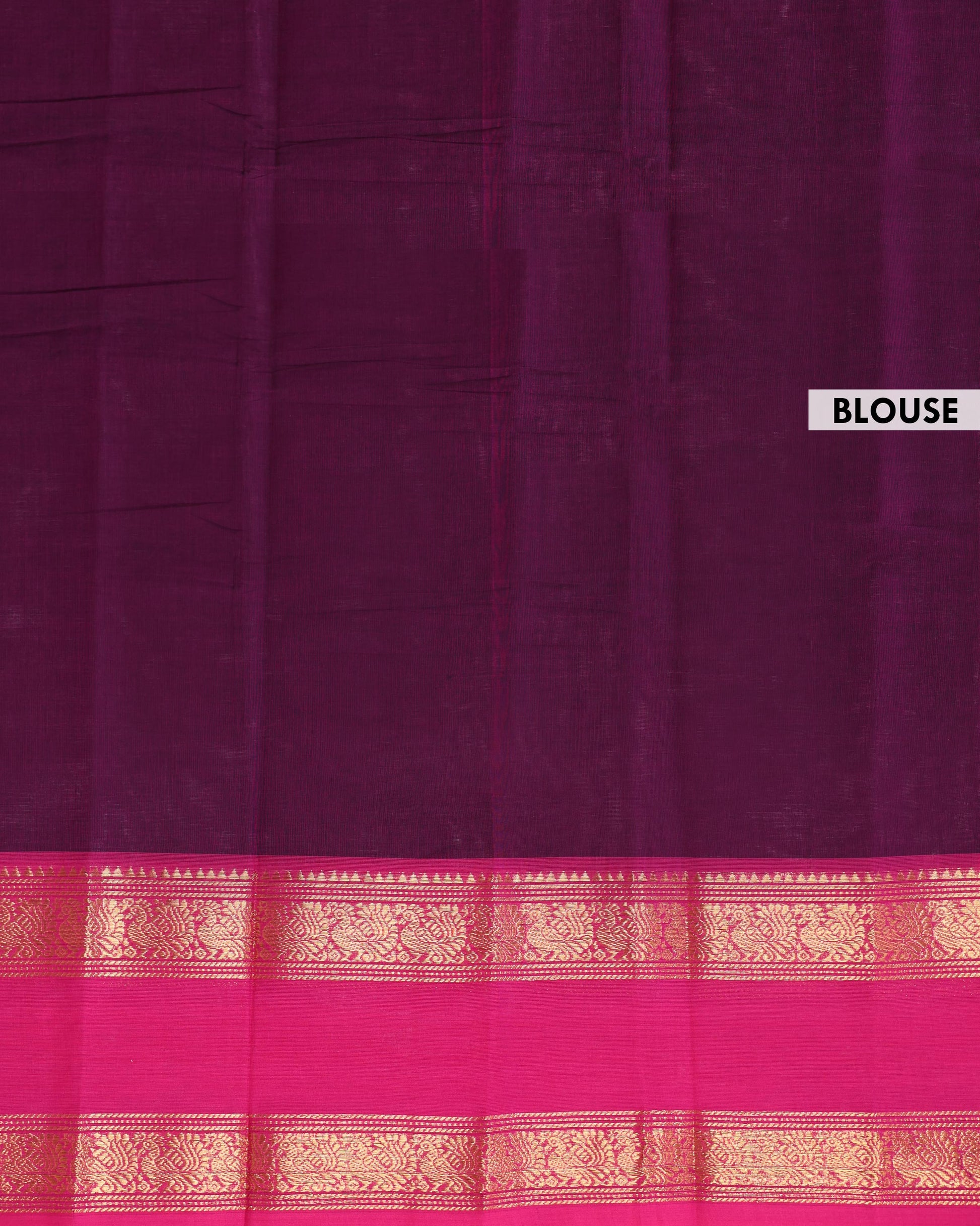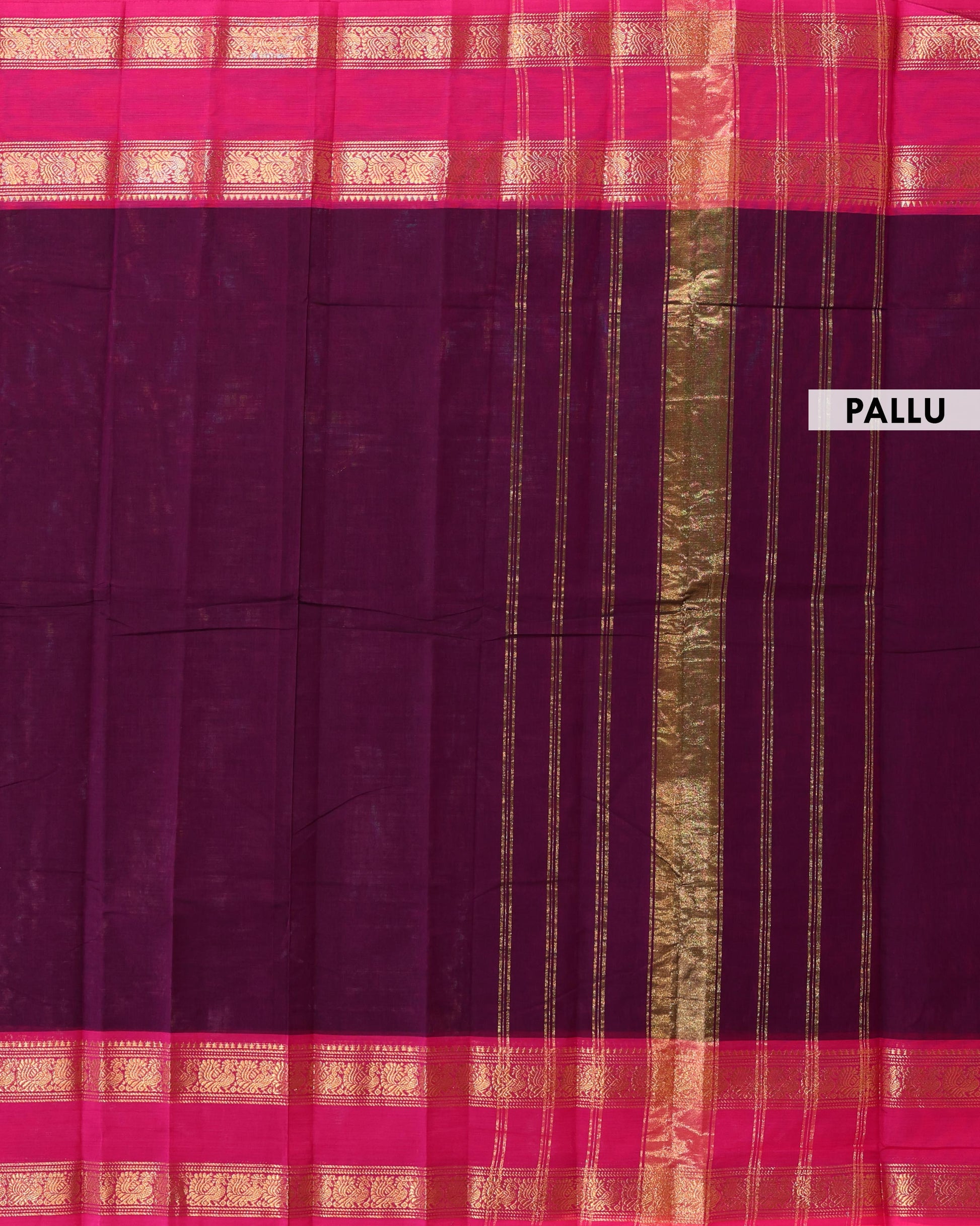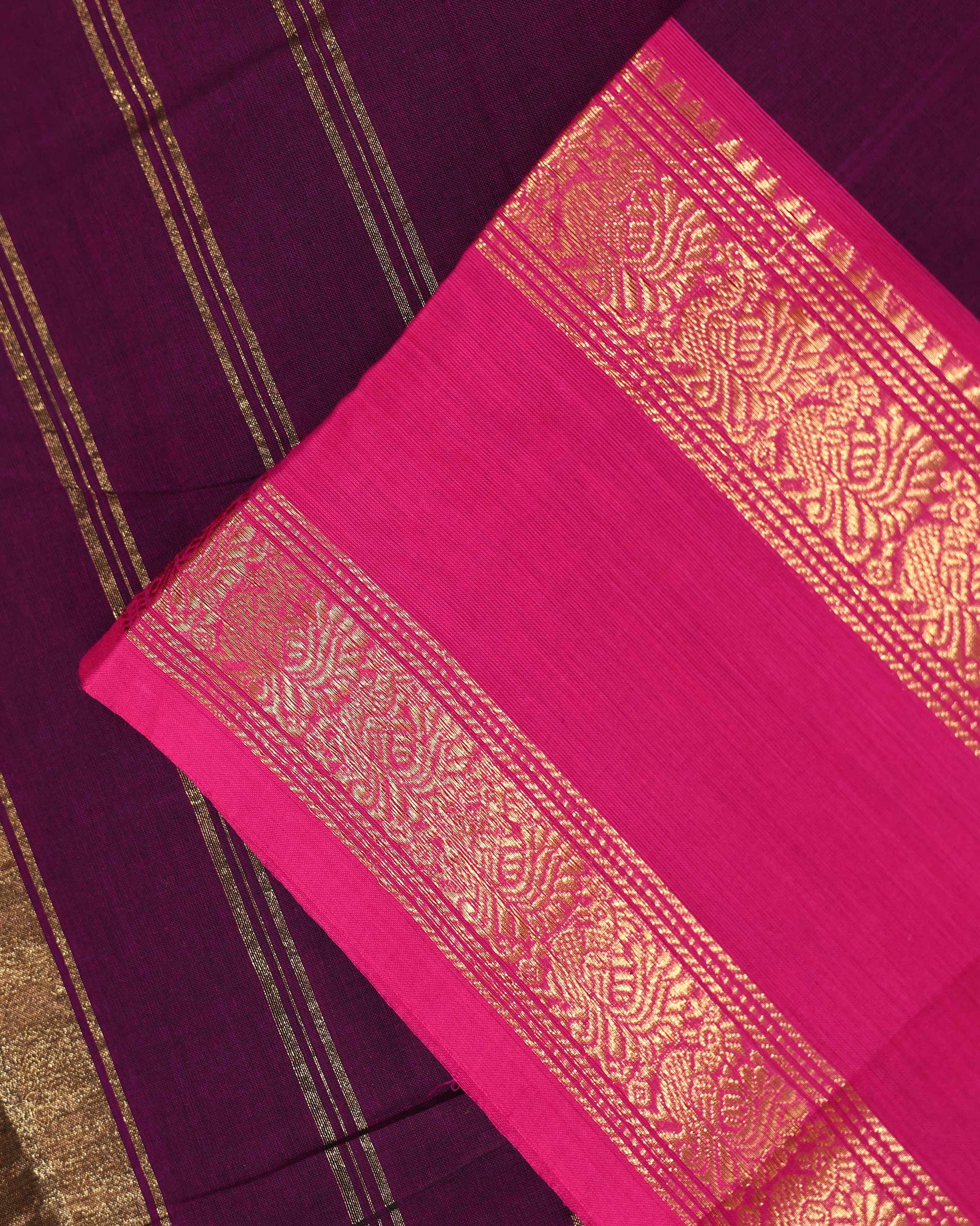 - This stunning handloom Chettinad cotton saree in vibrant Purple body a contrasting Pink border , offering a perfect blend of tradition and comfort.