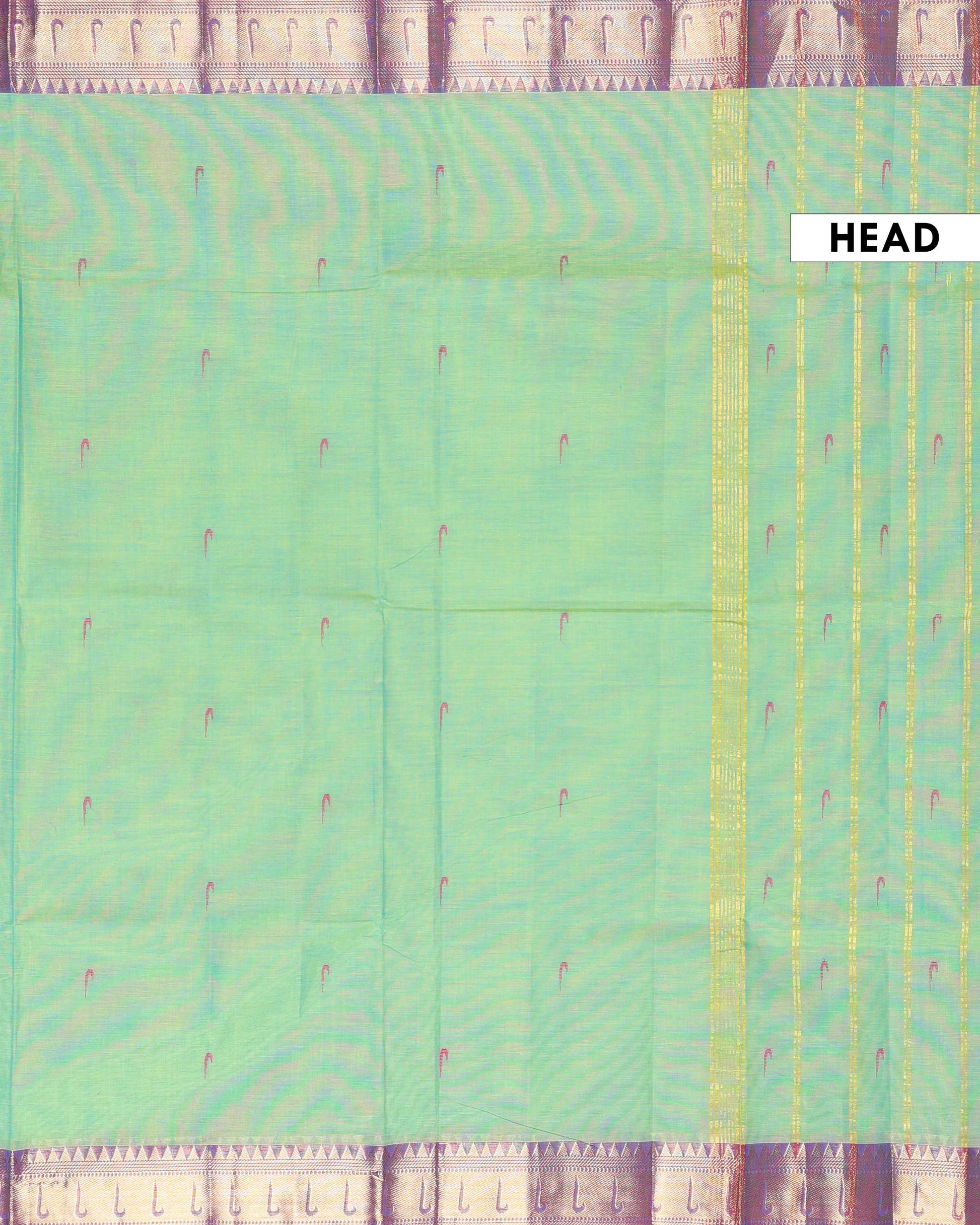 Elegant Handloom Chettinad Cotton Saree with Traditional Contrast Border and Subtle Motifs - Light Green