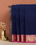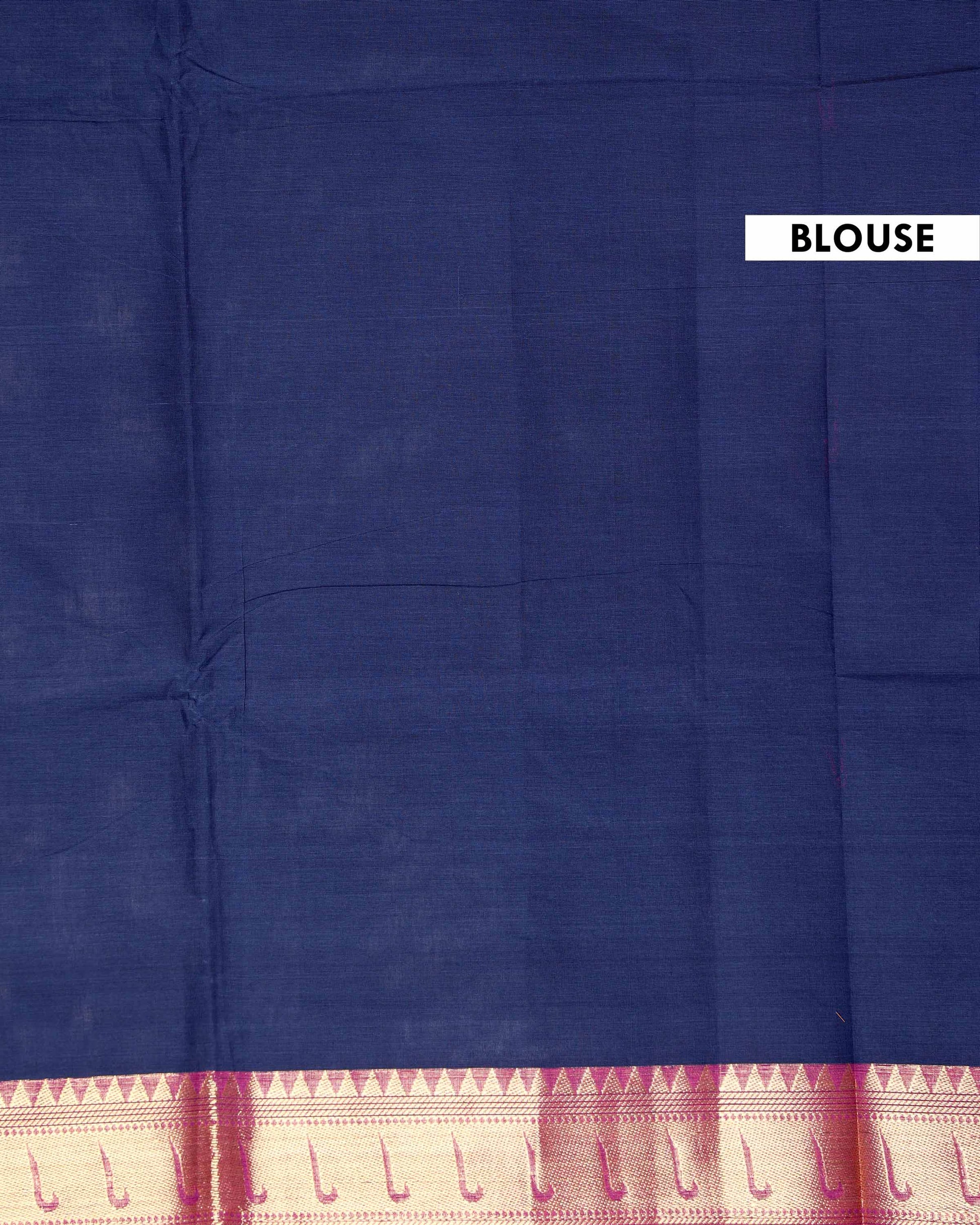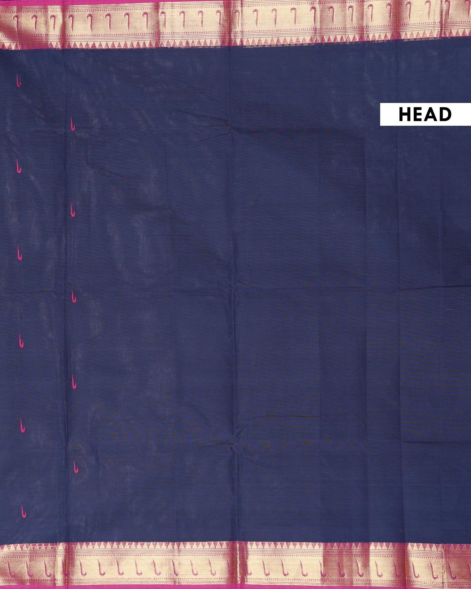 Elegant Handloom Chettinad Cotton Saree with Traditional Contrast Border and Subtle Motifs - Navy Blue
