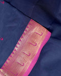 - Discover timeless elegance with this Navy Blue Chettinad Cotton saree a captivating striped body and vibrant contrast Pink zari border
