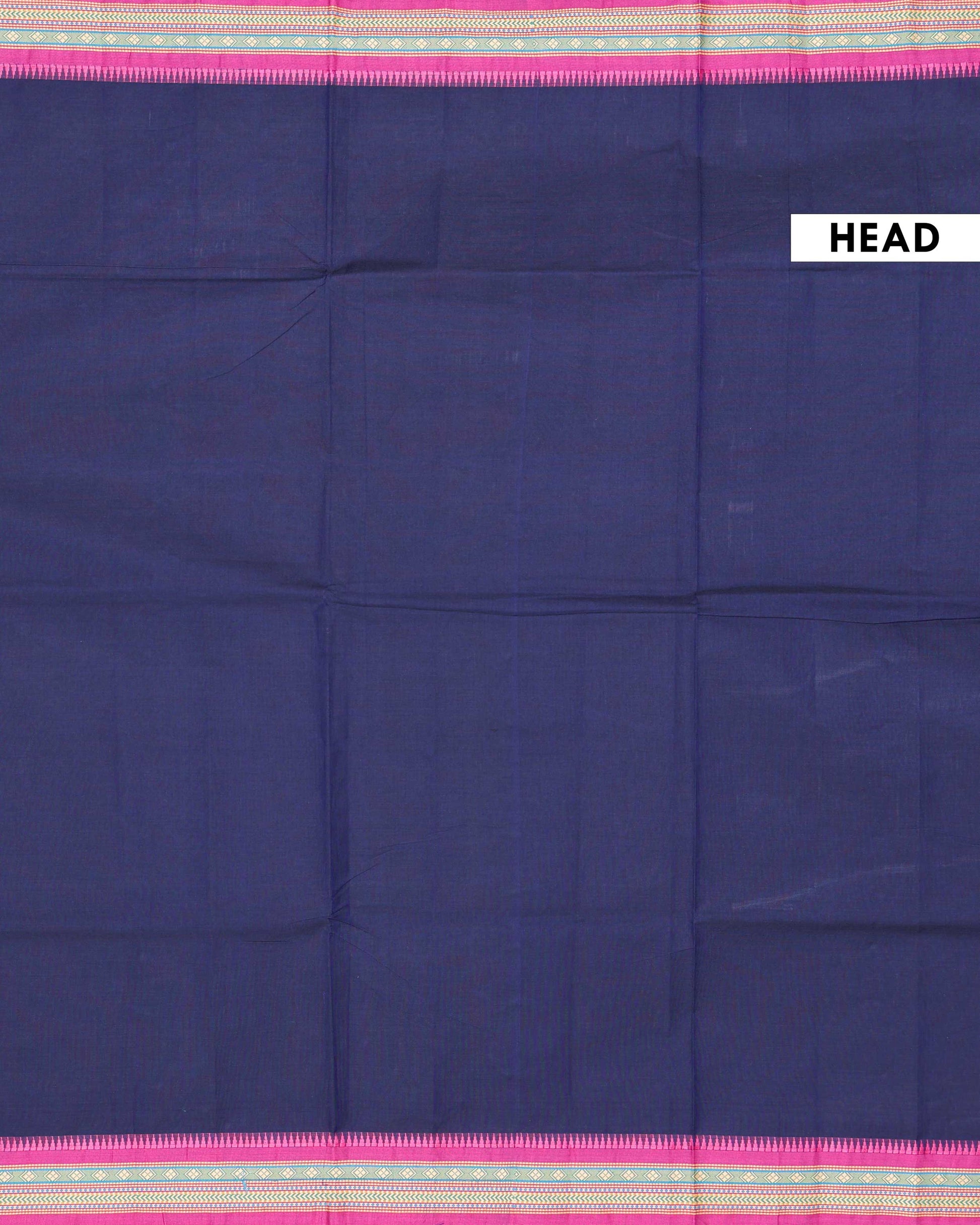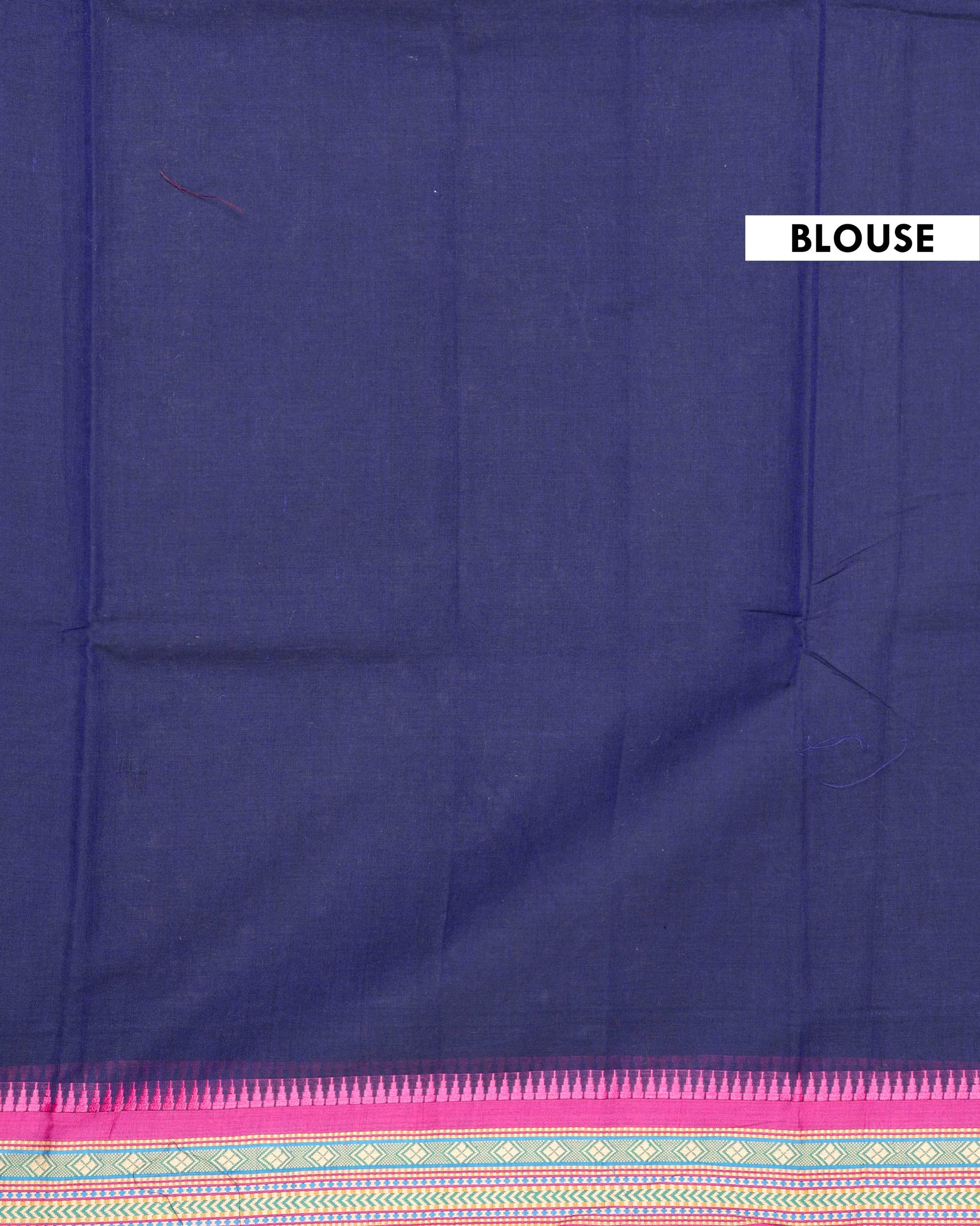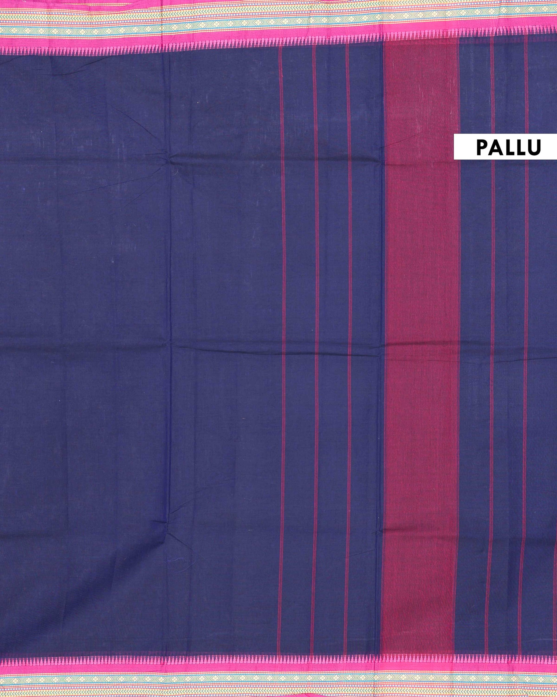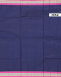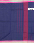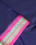 - This stunning navy blue Chettinad cotton saree features a vibrant temple border in magenta pink and gold, offering an elegant and traditional handloom style.