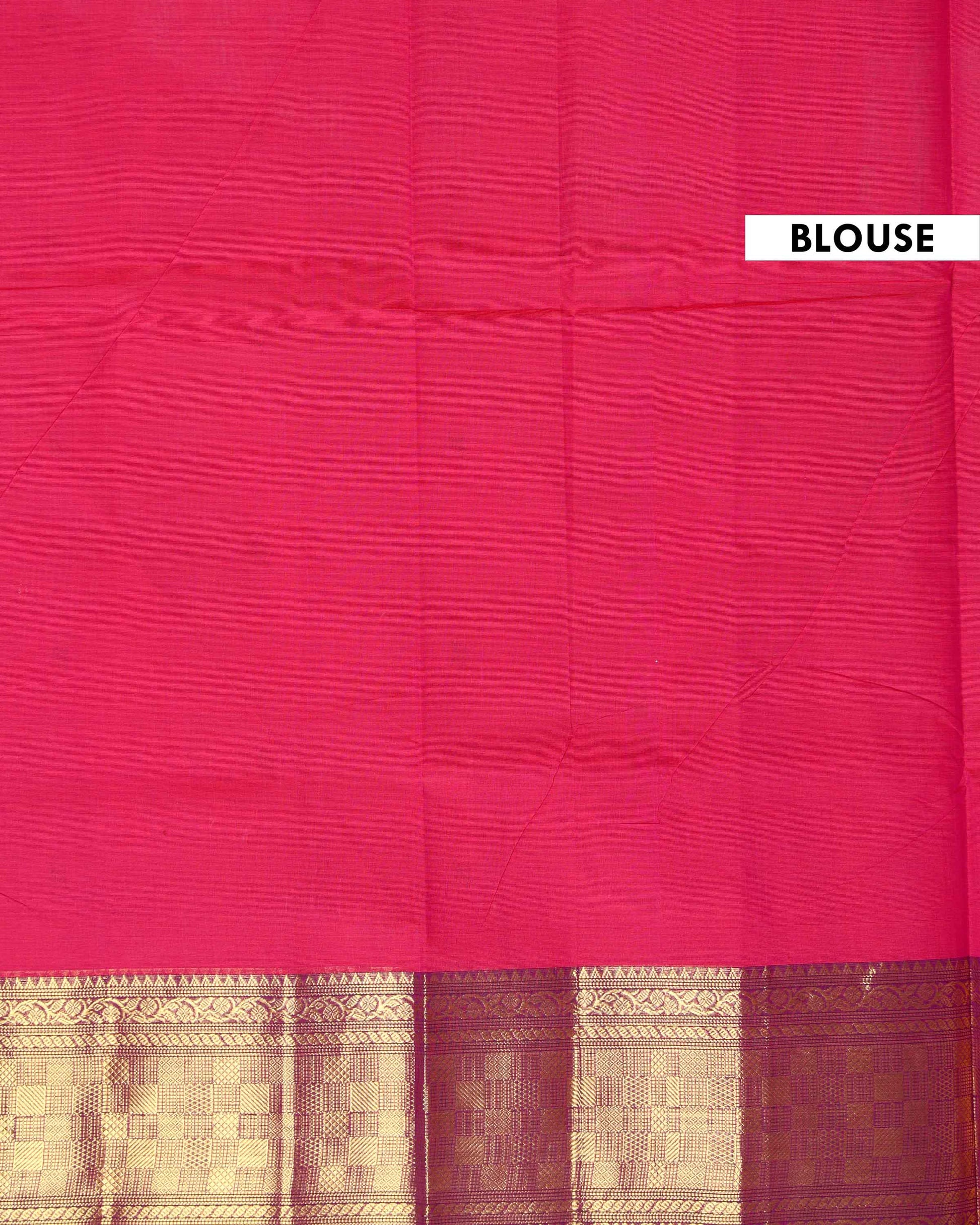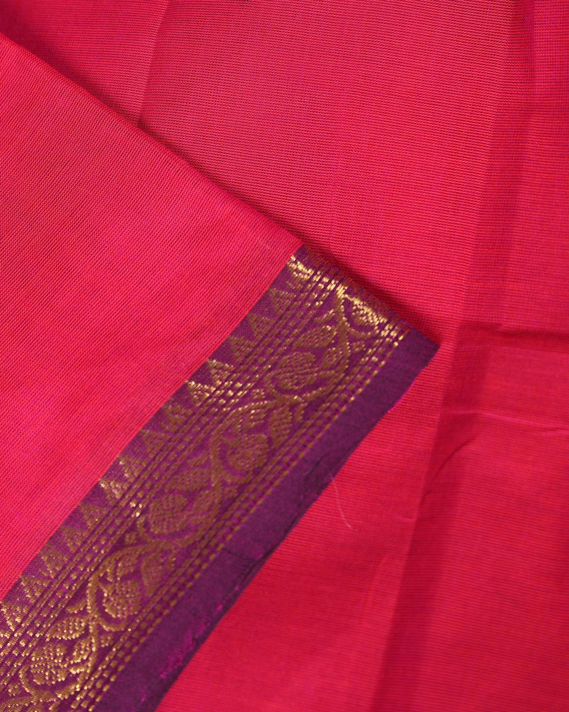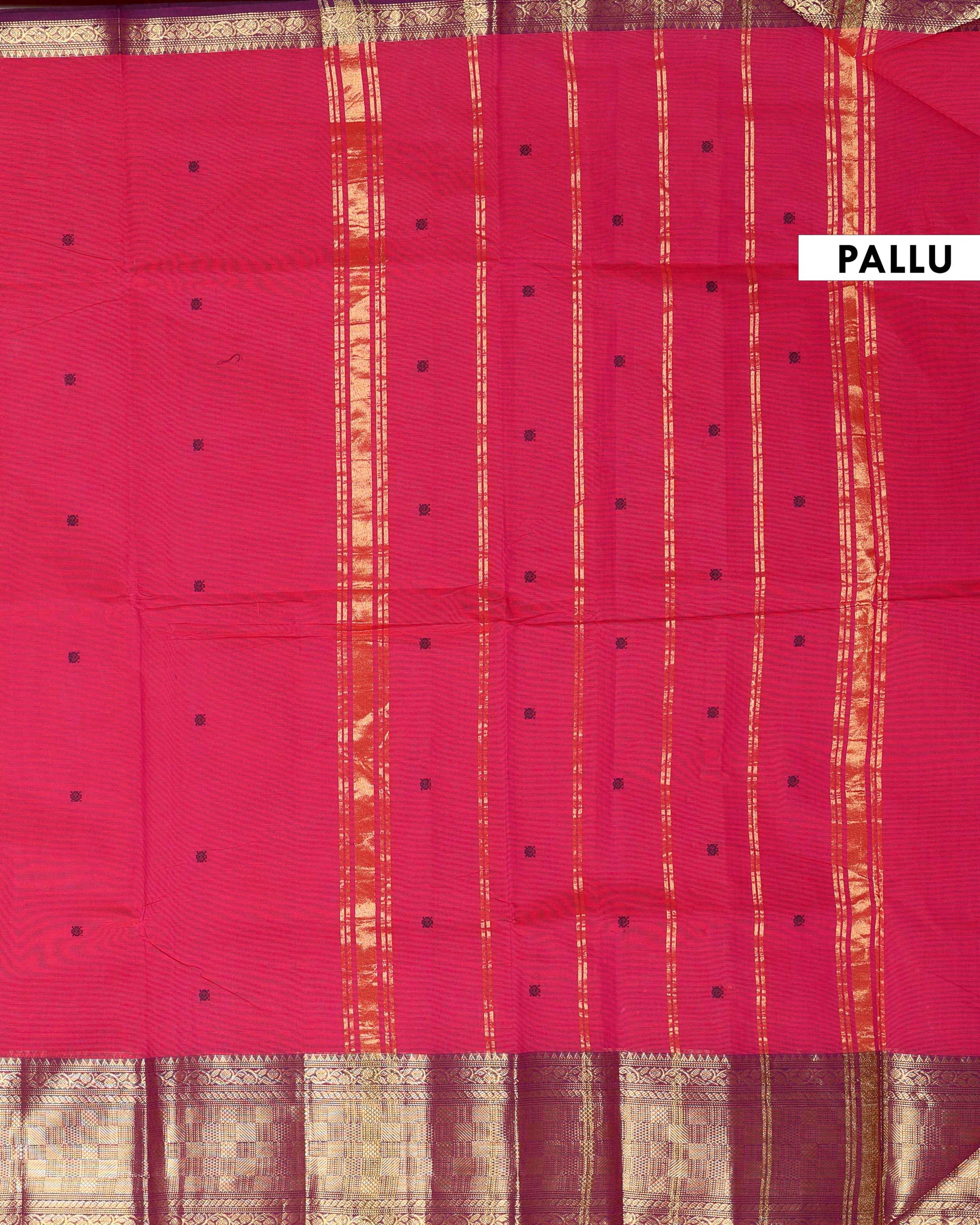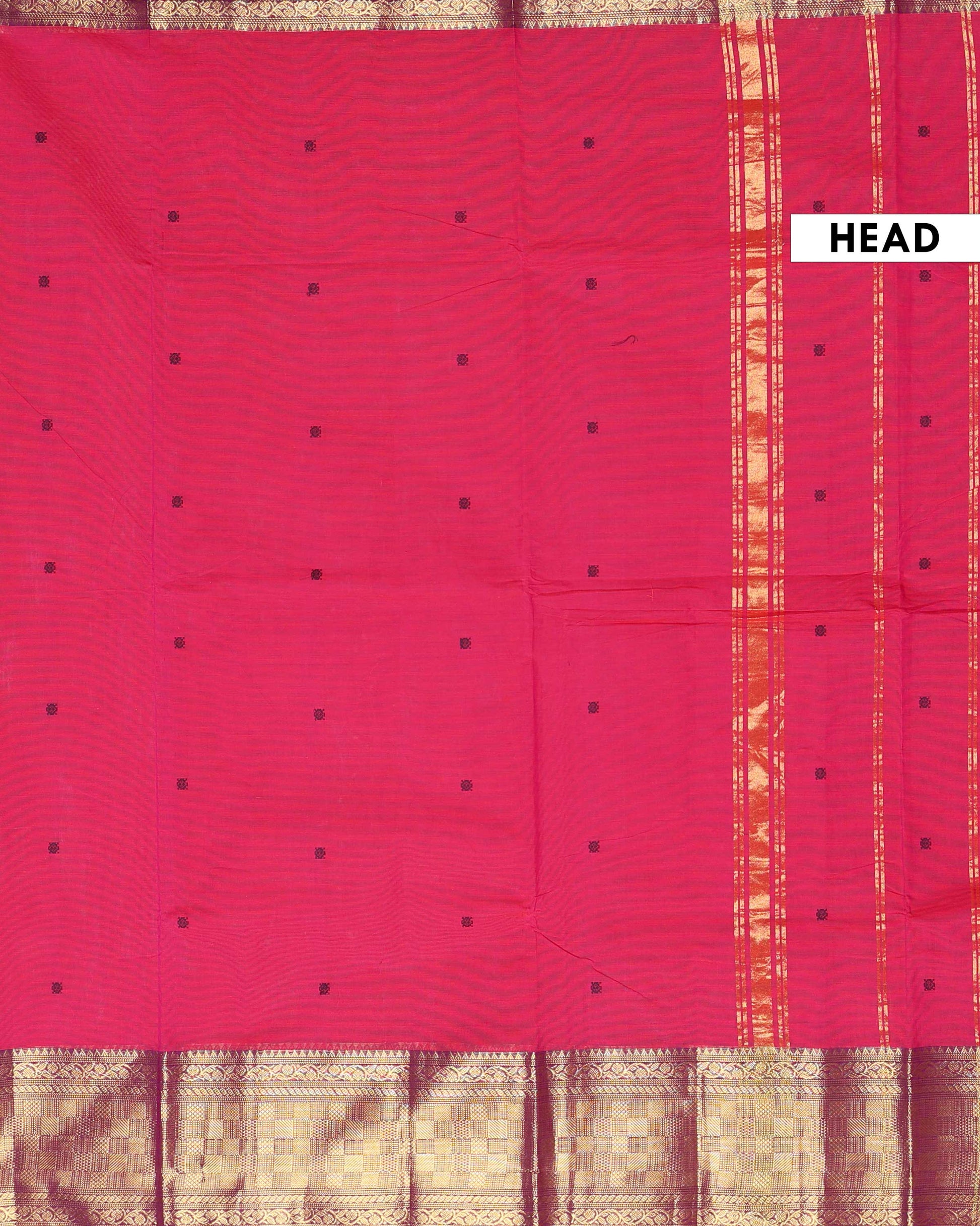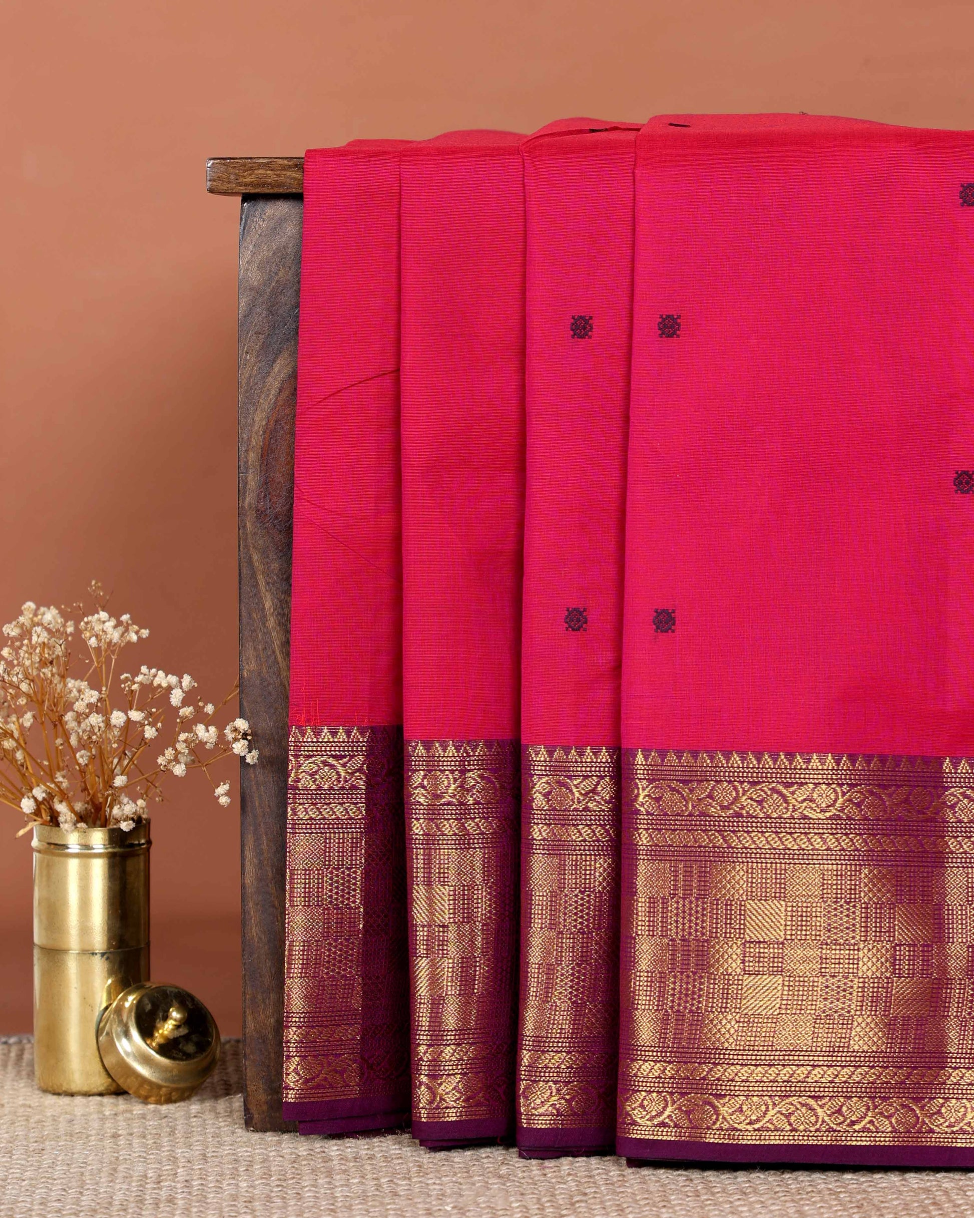 Elegant Handloom Chettinad Cotton Saree with Traditional Zari Border and Subtle Motifs - Dark Pink