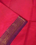 - Adorn yourself in timeless charm with this elegant red Chettinad Cotton Saree a plain body and a vibrant purple zari woven border that exudes traditional elegance