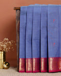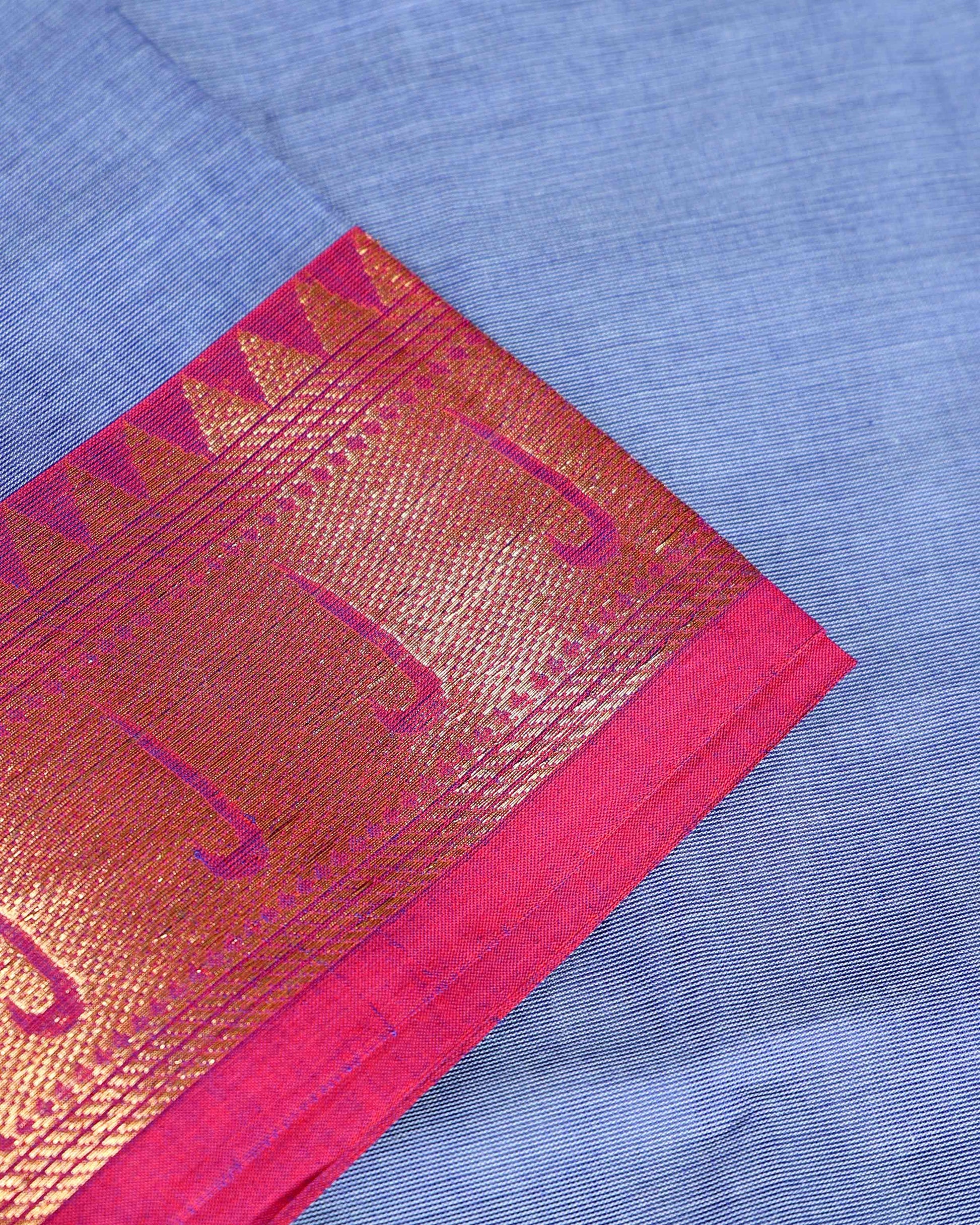 Elegant Handloom Chettinad Cotton Saree with Traditional Zari Border - Blue
