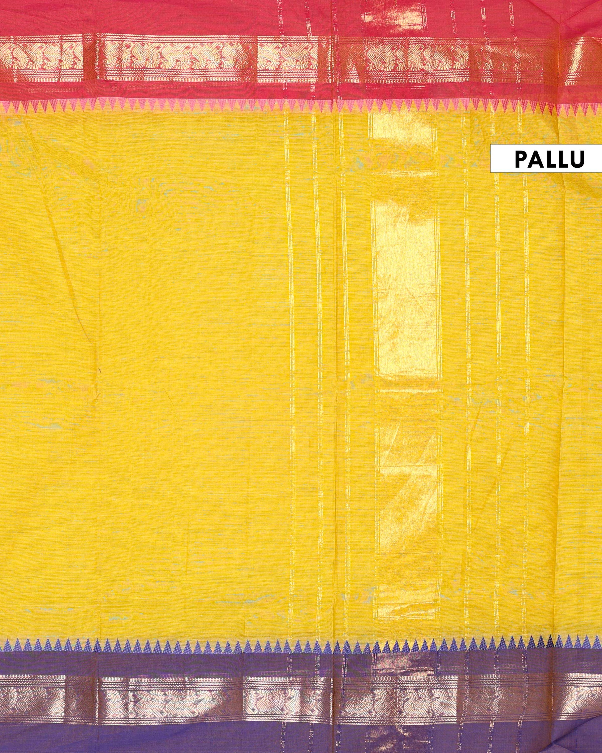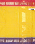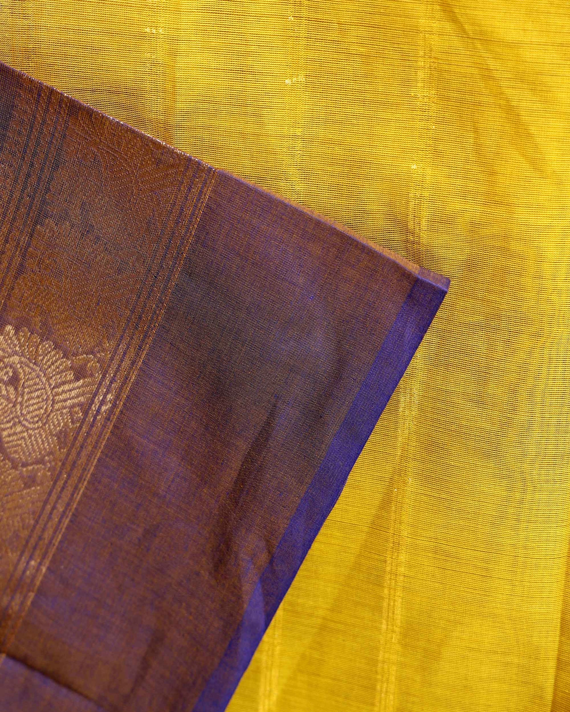 - This stunning Chettinad Cotton Saree a vibrant yellow body and a rich purple border with intricate designs